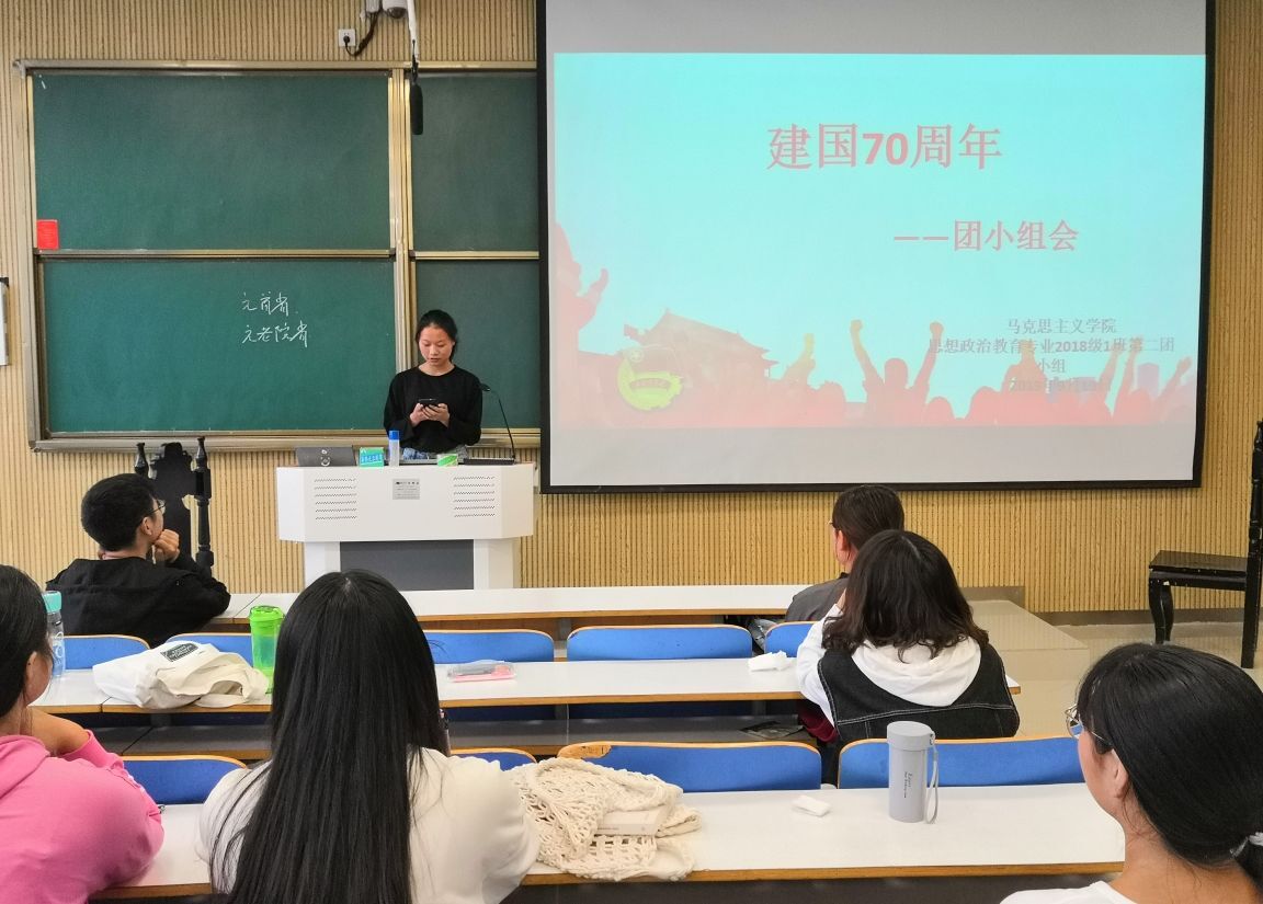 9月16日下午,pp电子官方网站2018级思想政治教育一班第二团小组在社科楼515教室顺利开展“建国70周年”主题团会。第二团小组全体成员共同参加此次团会。团会由团小组成员陈璐龙主持。