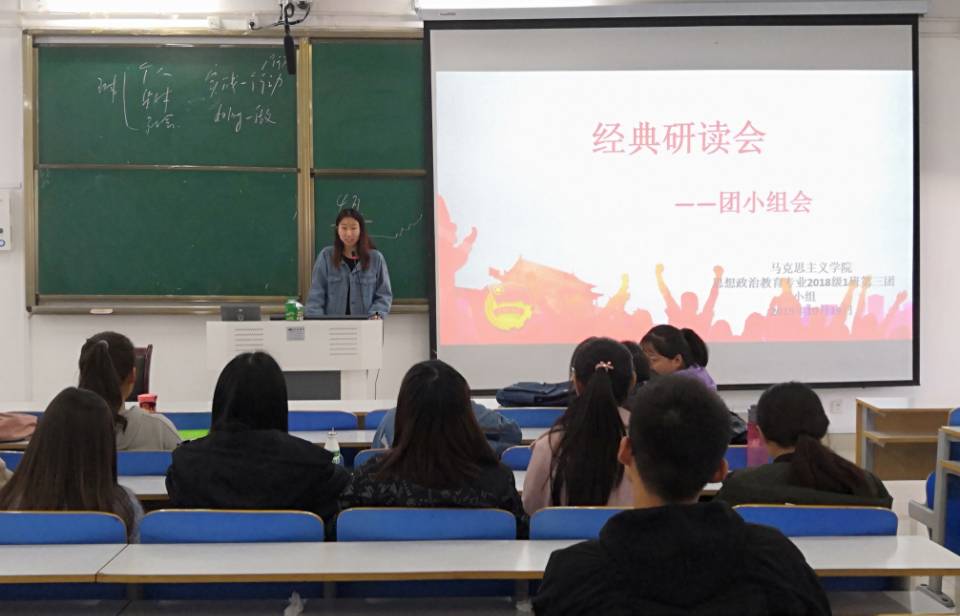 10月15日上午,pp电子官方网站2018级思想政治教育一班在社科楼514教室顺利开展“经典研读会”特色活动。2018级思想政治教育一班全体同学共同参加此次活动。活动由文体委员丁一主持。