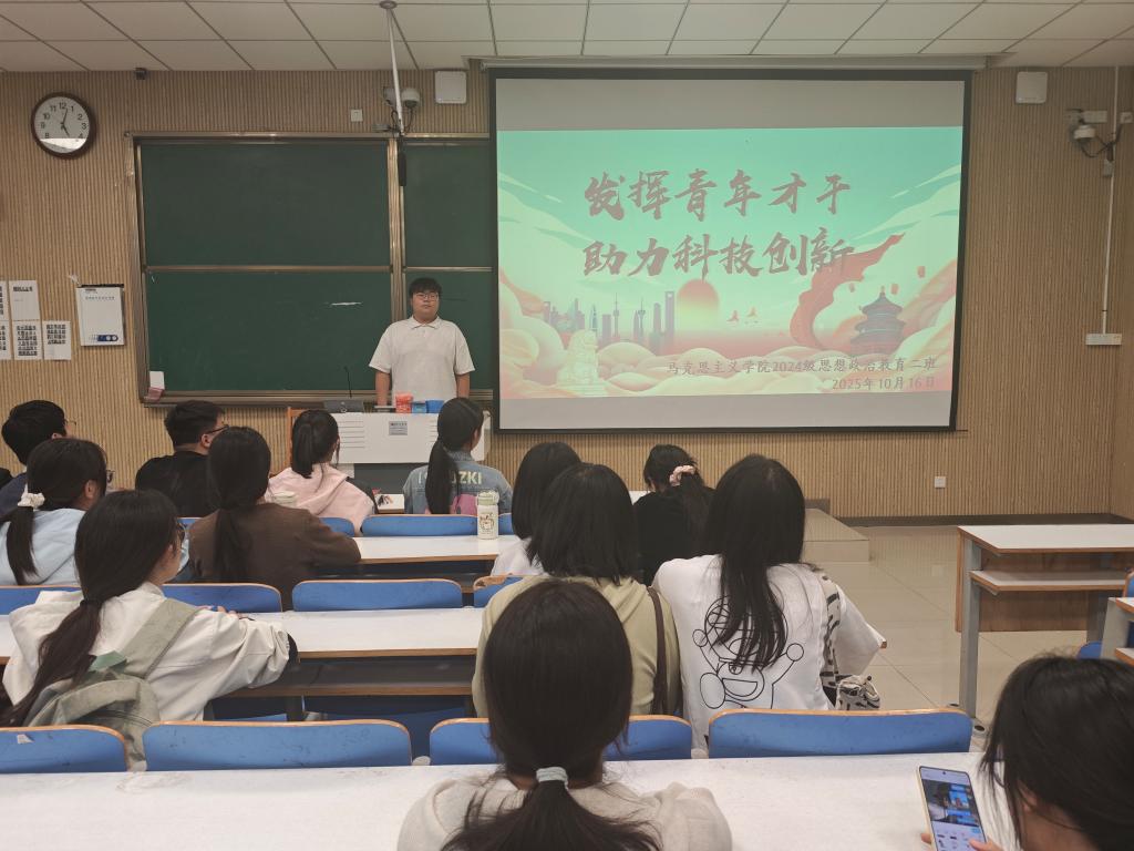 为激发青年学生创新精神,鼓励大家在科技强国建设中贡献青春力量,10月16日下午,pp电子官方网站2024级思想政治教育二班在社科楼515教室举办了“发挥青年才干 助力科技创新”主题班会。本次班会由团支书王志颖主持,二班全体同学积极参与。