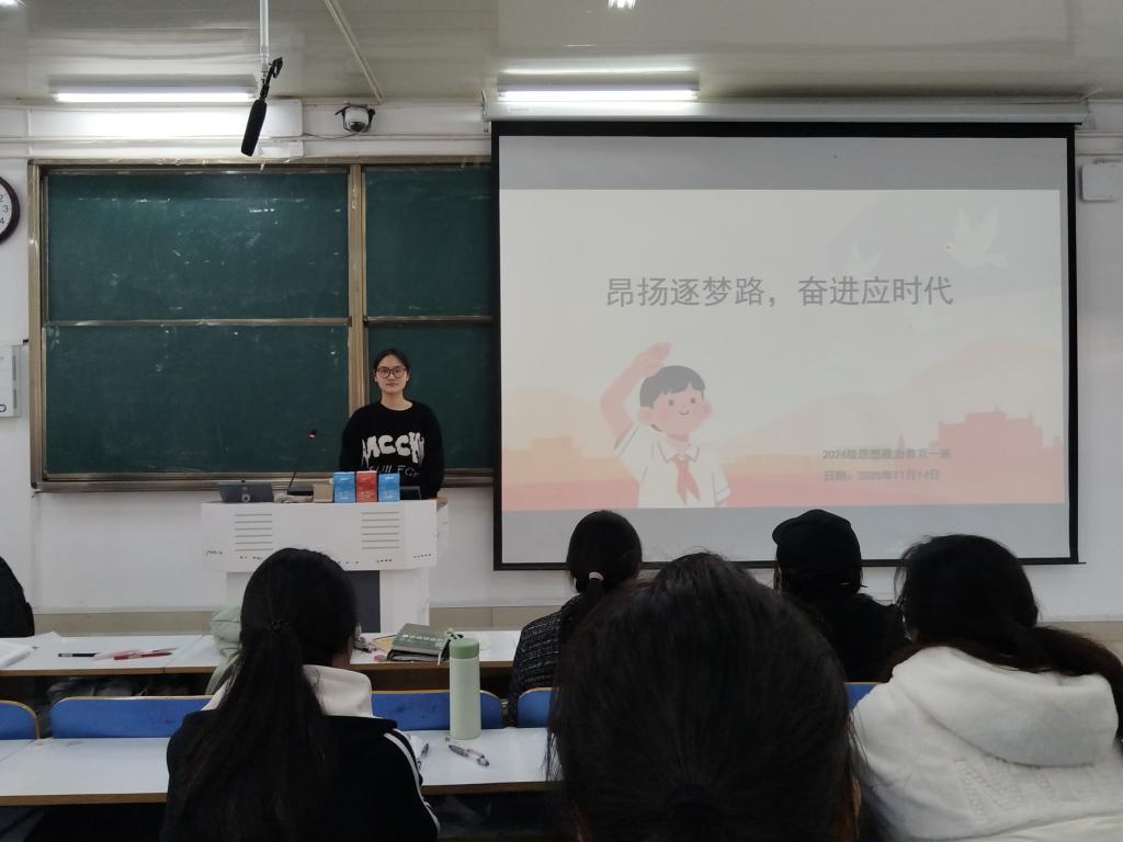 为深化青年学子的使命认知,凝聚奋进青春力量,11月14日上午,pp电子官方网站2024级思想政治教育一班于社科楼514教室开展“昂扬逐梦路,奋进应时代”主题团课。本次团课由团支书李冉主持,一班全体同学参加。