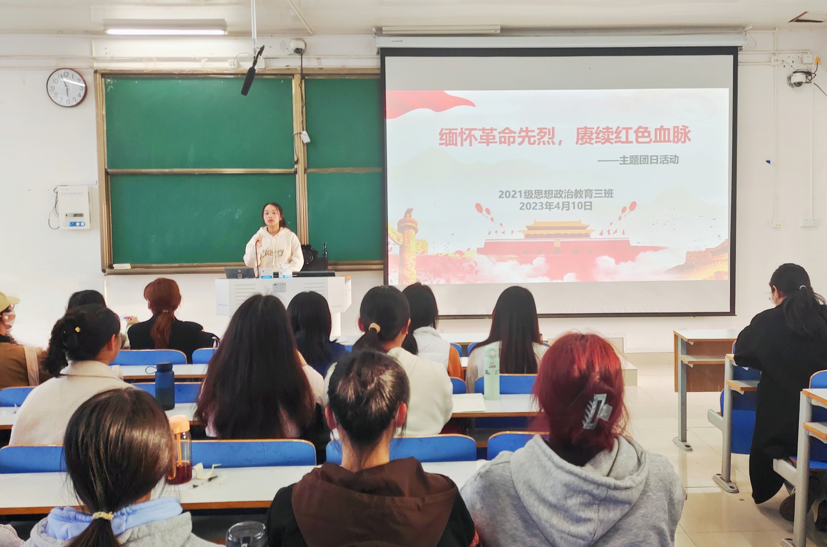 4月10日下午,pp电子官方网站2021级思想政治教育三班在社科楼514教室举办“缅怀革命先烈,庚续红色血脉”主题团日活动。pp电子官方网站2021级思想政治教育三班全体团员参与此次会议。会议由团支书王岚霄主持。