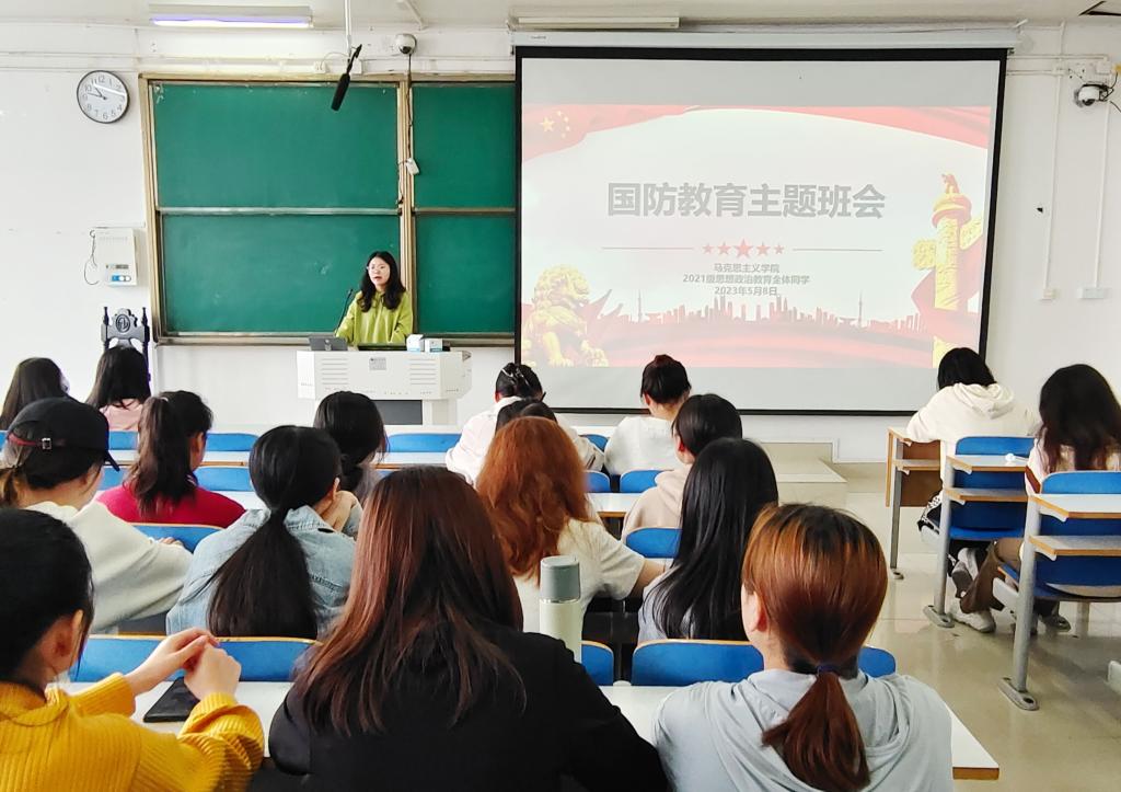 5月8日下午,pp电子官方网站2021级思想政治教育三班、四班在社科楼514教室召开国防教育主题班会。辅导员高小佳以及2021级思想政治教育全体成员共同参加此次主题班会。班会由辅导员高小佳主持。