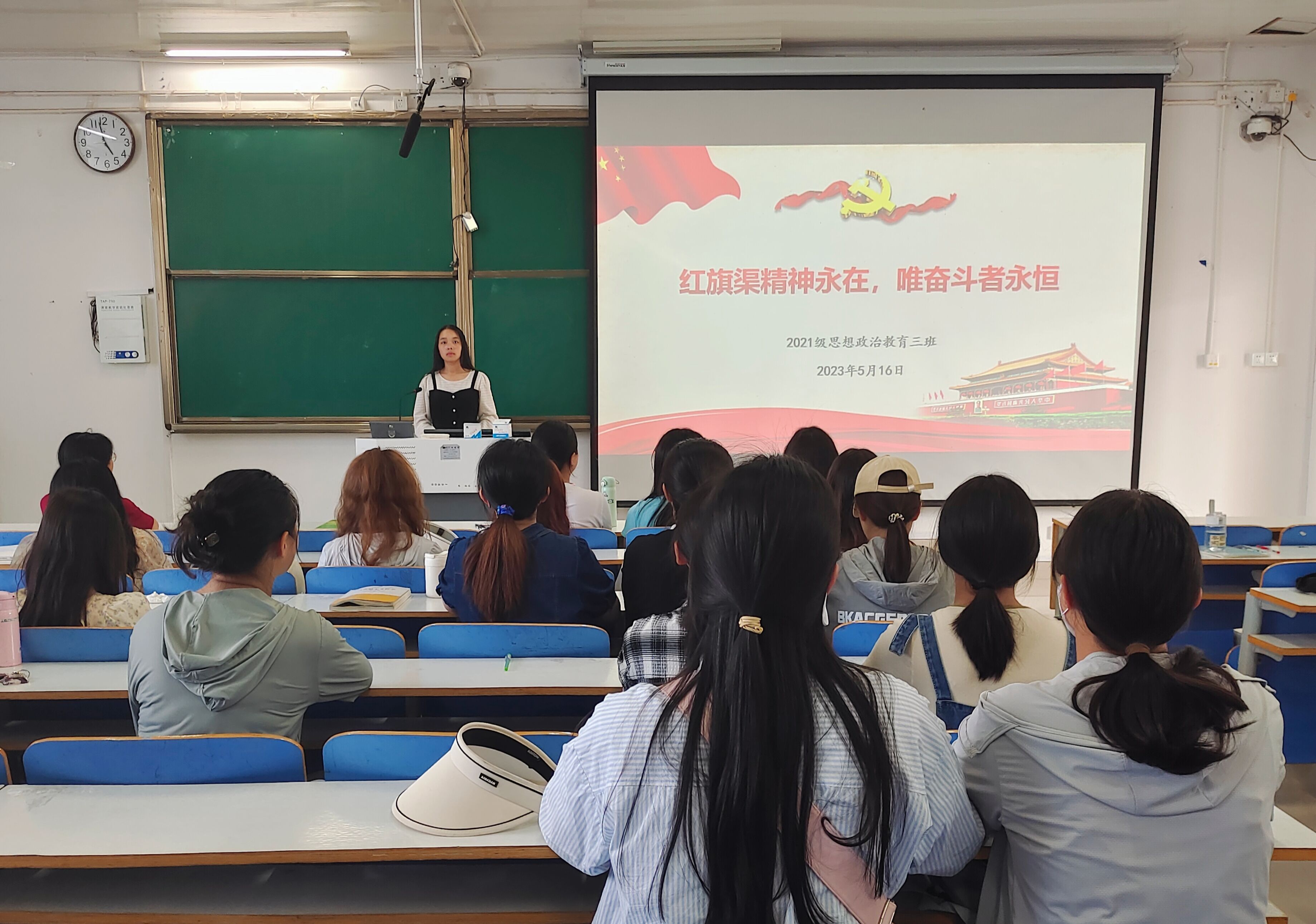 一渠绕群山,精神动天下。5月16日下午,pp电子官方网站2021级思想政治教育三班在社科楼514教室举办“红旗渠精神永在,唯奋斗者永恒”主题团课。pp电子官方网站2021级思想政治教育三班全体团员参与此次活动。团课由团支书王岚霄主持。