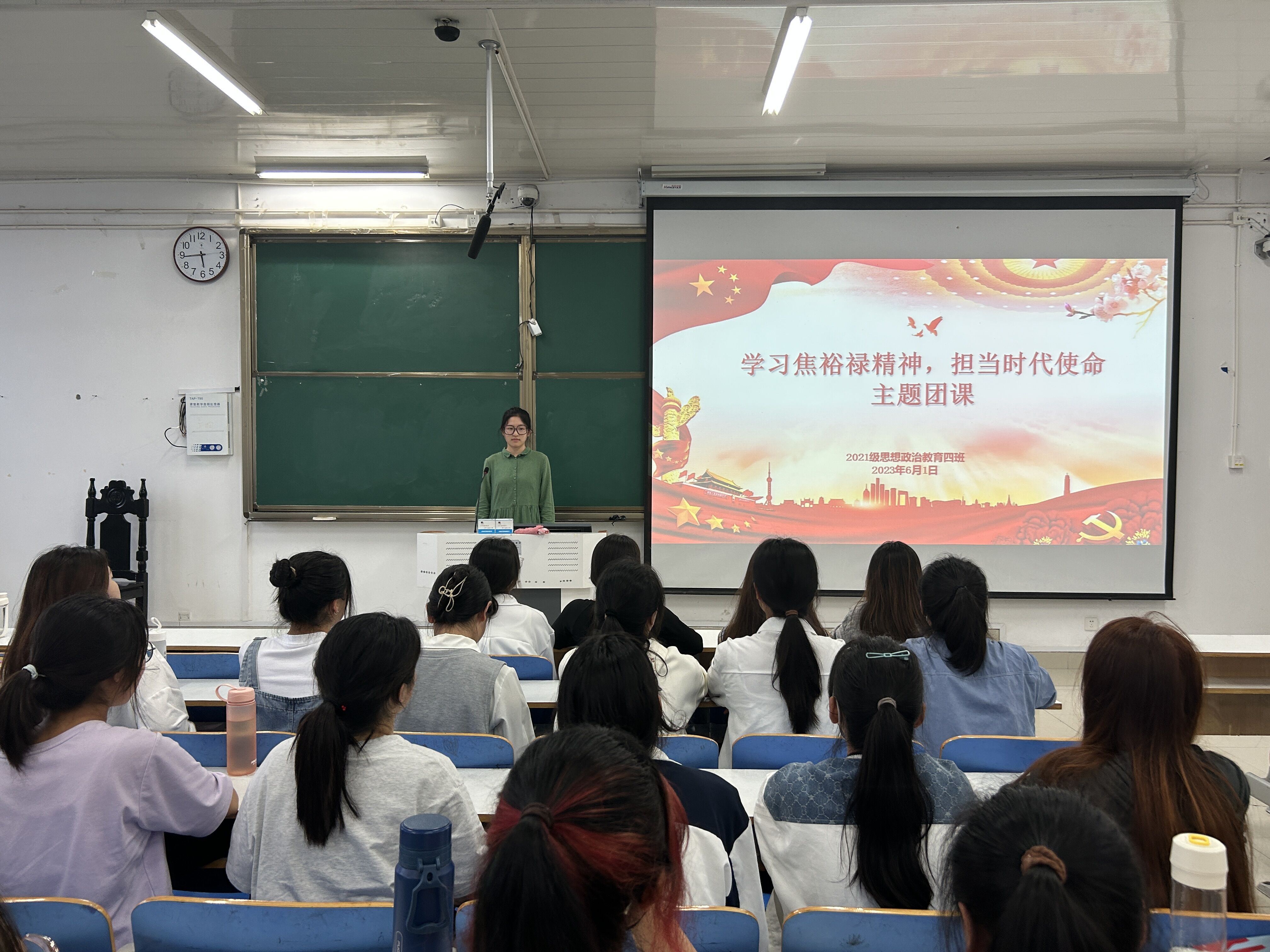 6月1日下午,pp电子官方网站2021级思想政治教育四班在社科楼514教室开展“学习焦裕禄精神,担当时代使命”主题团课。2021级思想政治教育四班全体团员参加本次团课。团课由团支书刘珂含主持。