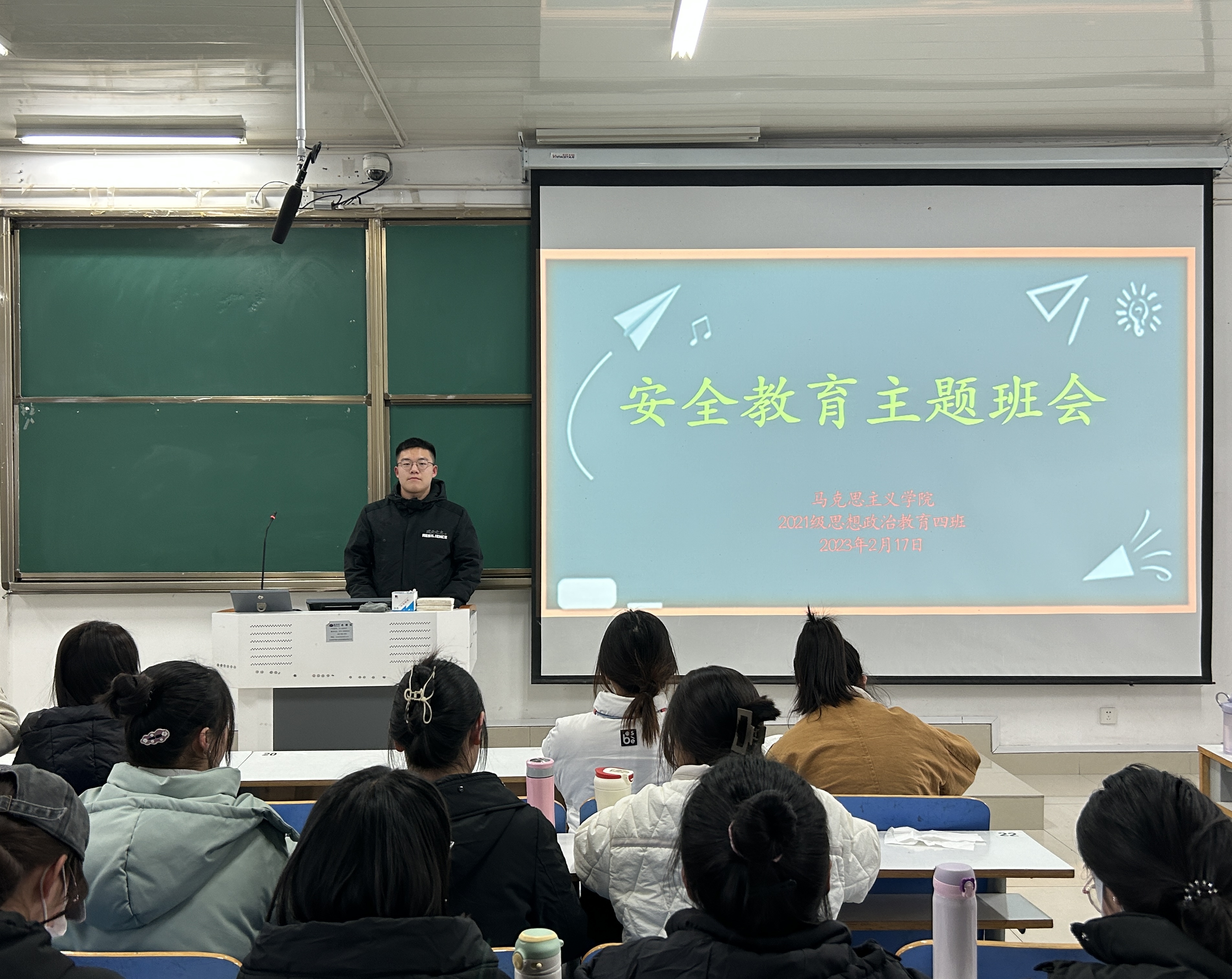 2月17日下午,pp电子官方网站2021级思想政治教育四班在社科楼514教室开展安全教育主题班会。2021级思想政治教育四班全体同学共同参会。班会由副班长常康哲主持。