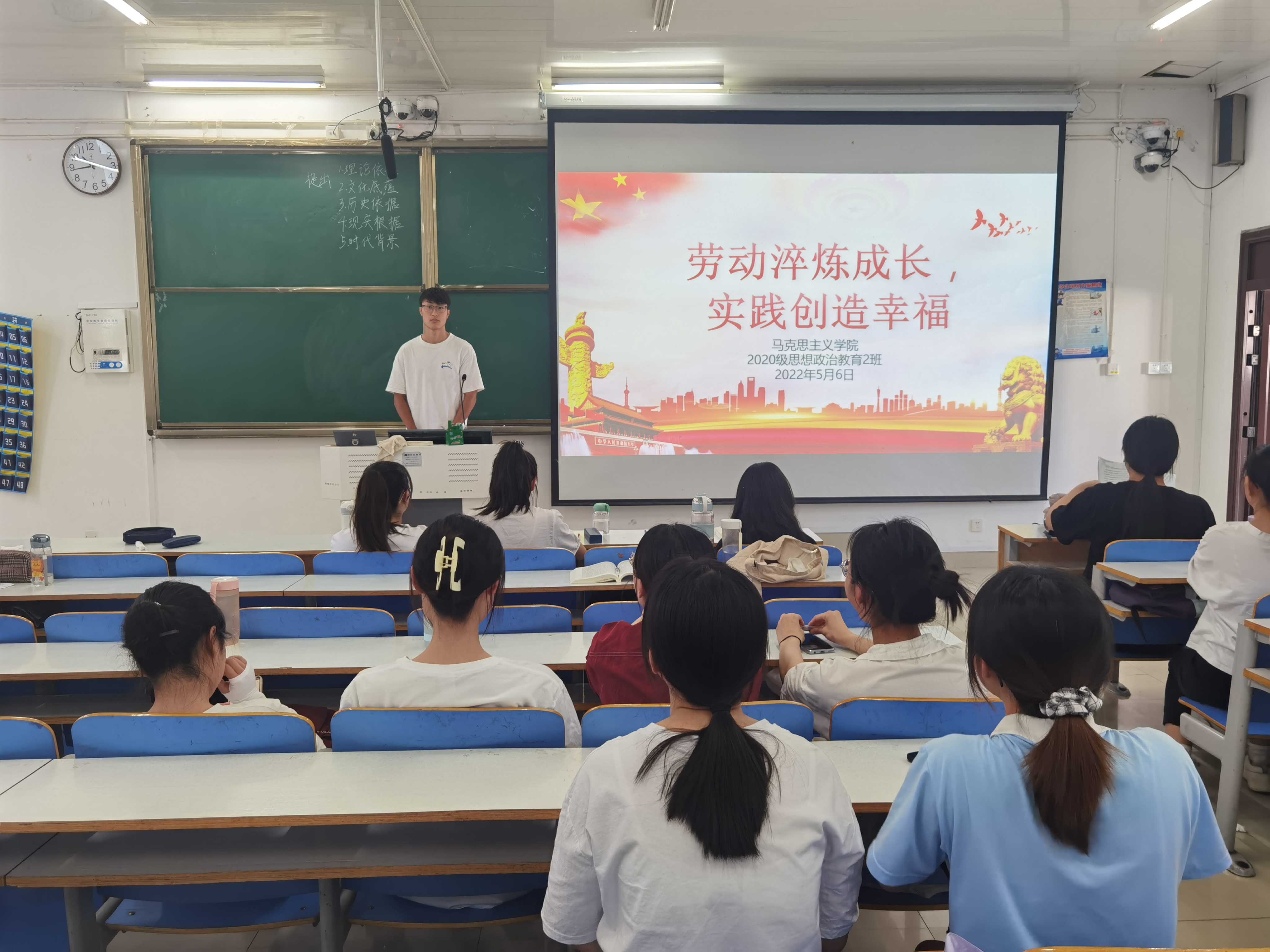 为进一步加强劳动教育,提高同学们的劳动意识,5月6日下午,pp电子官方网站2020级思想政治教育二班、定向二班在社科楼514教室开展“劳动淬炼成长,实践创造未来”主题班会。2020级思想政治教育二班、定向二班全体成员参与本次班会。班会由班长陈宇航主持。