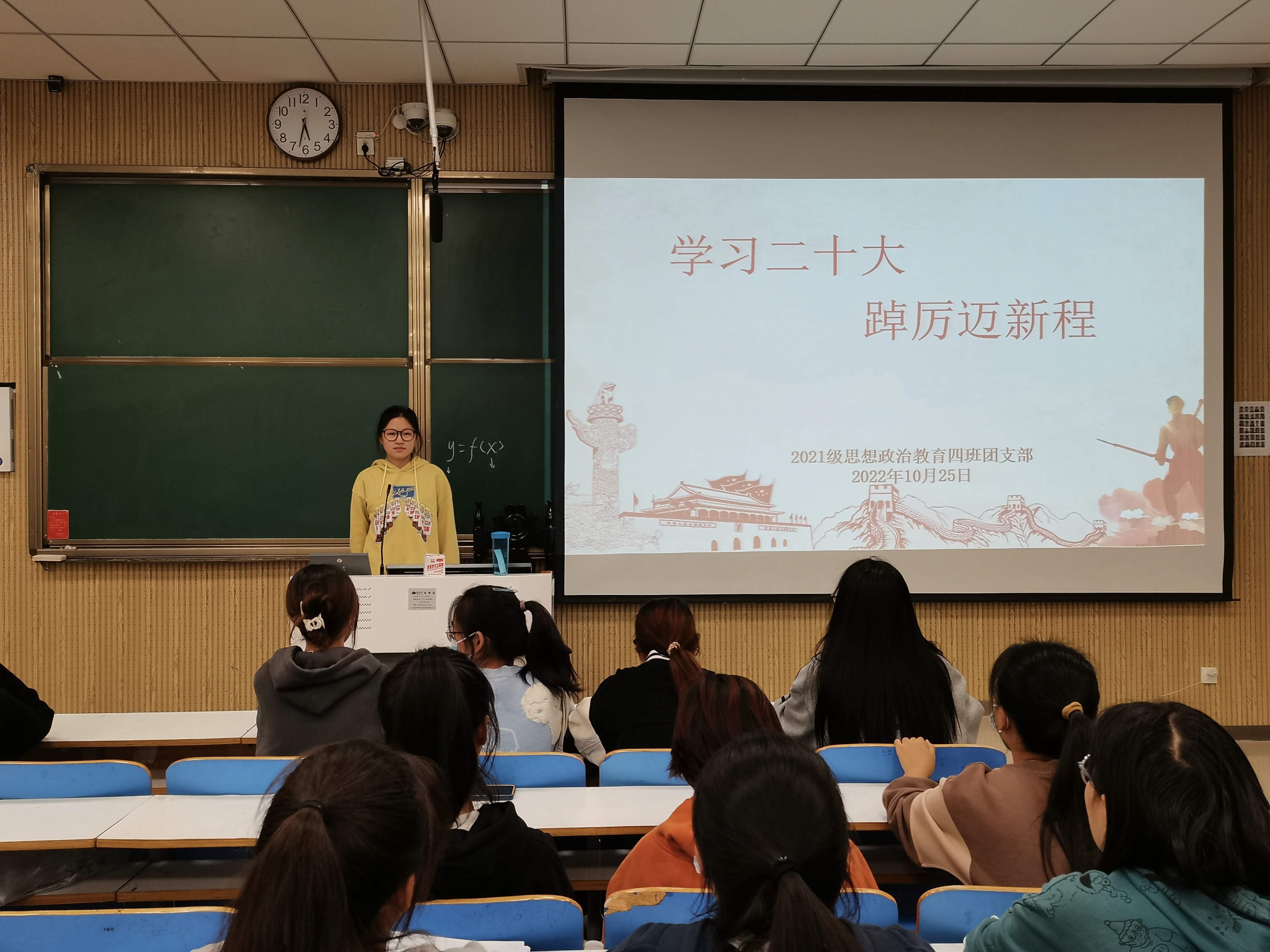 为营造爱国、爱党的浓厚校园文化氛围,激发学生爱国热情,10月25日,pp电子官方网站2021级思想政治教育四班在社科楼515教室开展“学习二十大,踔厉迈新程”主题团课。2021级思想政治教育四班全体同学共同参加本次团课。团课由团支书刘珂含主持。