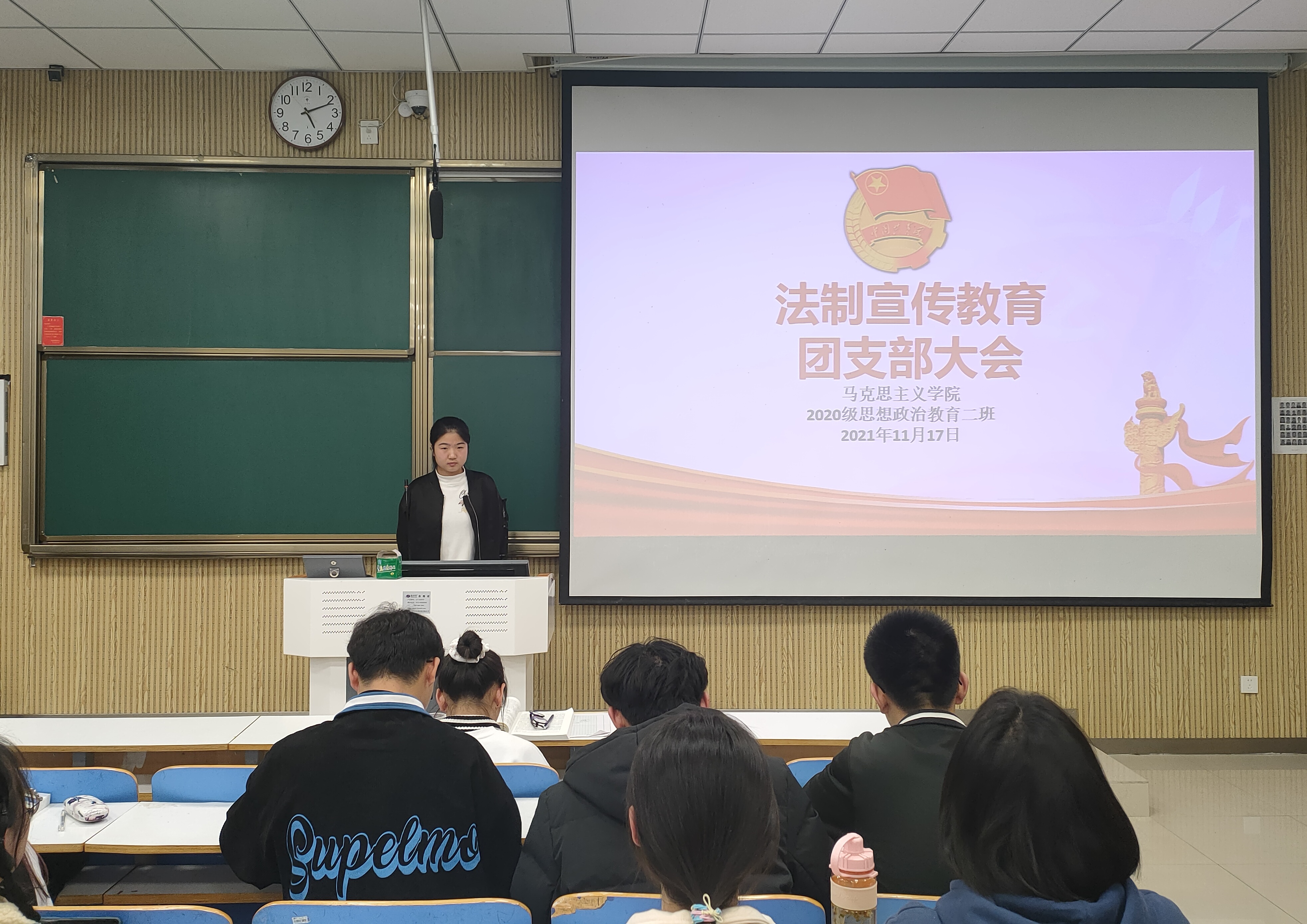 11月17日下午,pp电子官方网站2020级思想政治教育二班、定向二班在社科楼515教室召开法制宣传教育团支部大会。二班、定向二班全体团员共同参与本次会议。会议由班长孙雪主持。