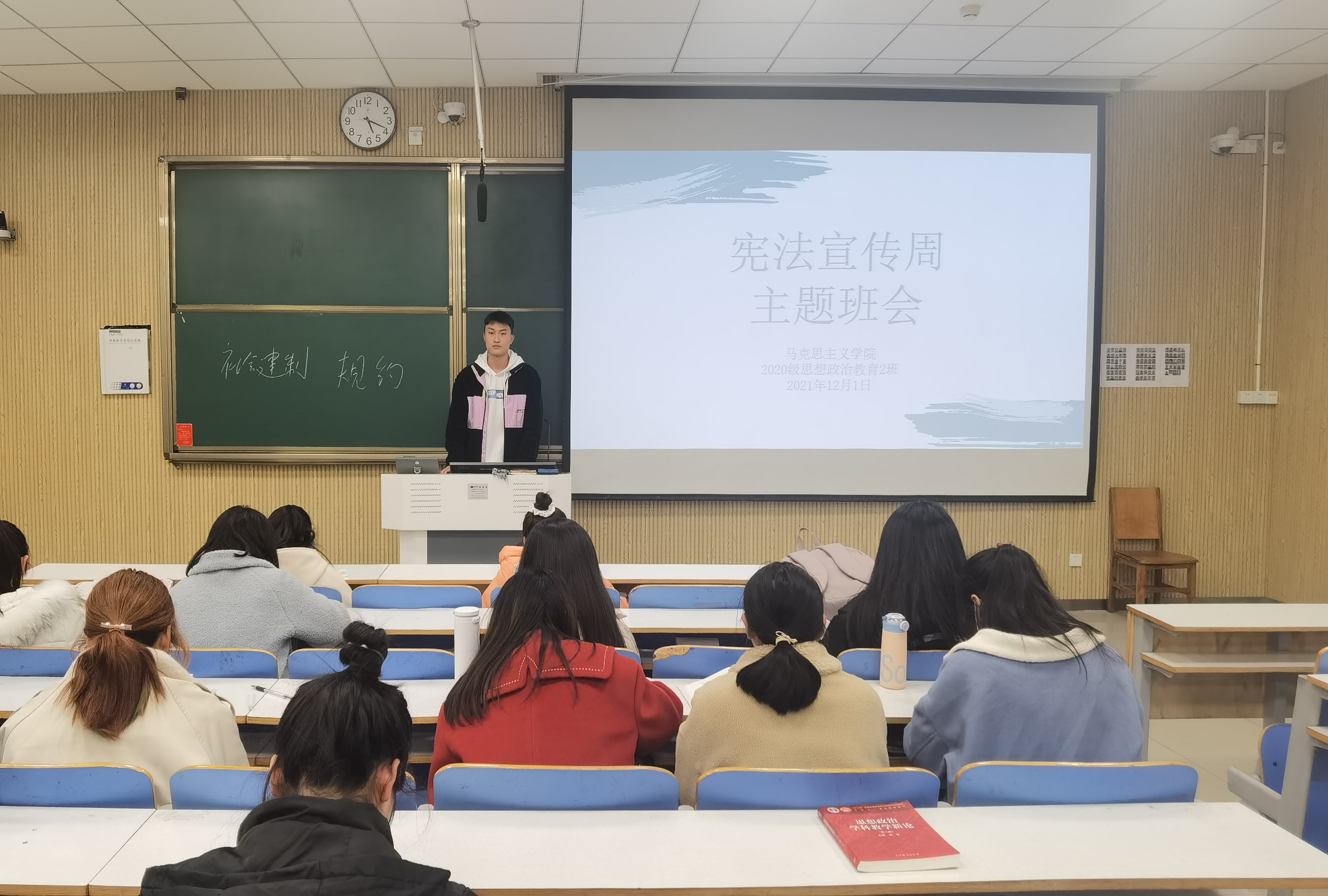 为深入落实pp电子官网关于开展“宪法宣传周”工作的具体要求,提升我班同学法治素养,12月1日下午,pp电子官方网站2020级思想政治教育二班、定向二班在社科楼515教室召开“宪法宣传周”主题班会。2020级思想政治教育二班、定向二班全体同学共同参与本次班会。会议由团支书陈宇航主持。