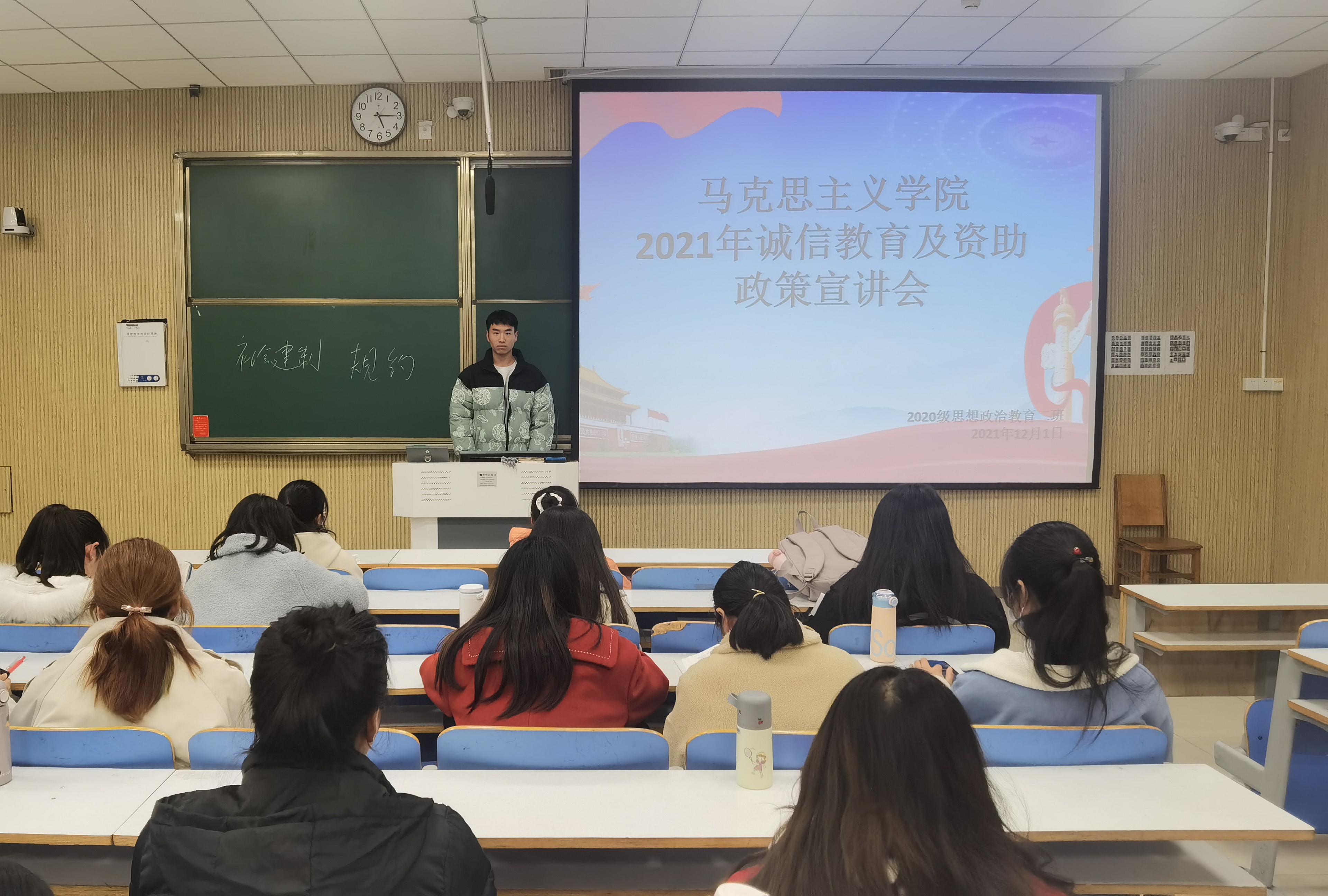 为进一步推进pp电子官网资助政策和资助育人宣传工作,切实增强资助工作实效。12月1日下午,pp电子官方网站2020级思想政治教育二班、定向二班在社科楼515教室召开诚信教育及资助政策宣传主题班会。2020级思想政治教育二班、定向二班全体同学共同参与本次班会。班会由副班长高红凯主持。