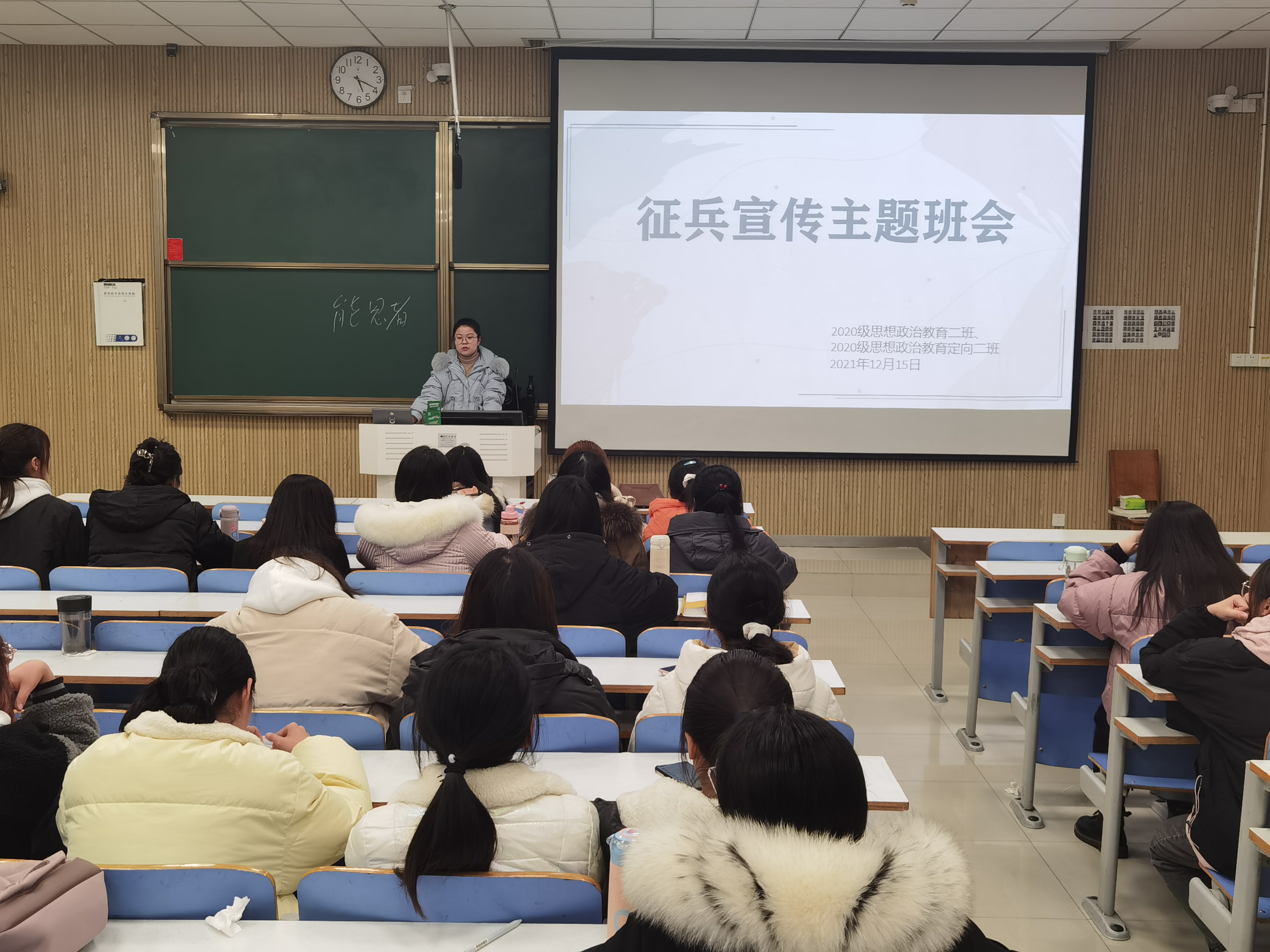 12月15日下午,pp电子官方网站2020级思想政治教育二班、定向二班在社科楼515教室召开征兵宣传主题班会。2020级思想政治教育二班、定向二班全体同学参与本次班会,辅导员高小佳出席会议并讲话。