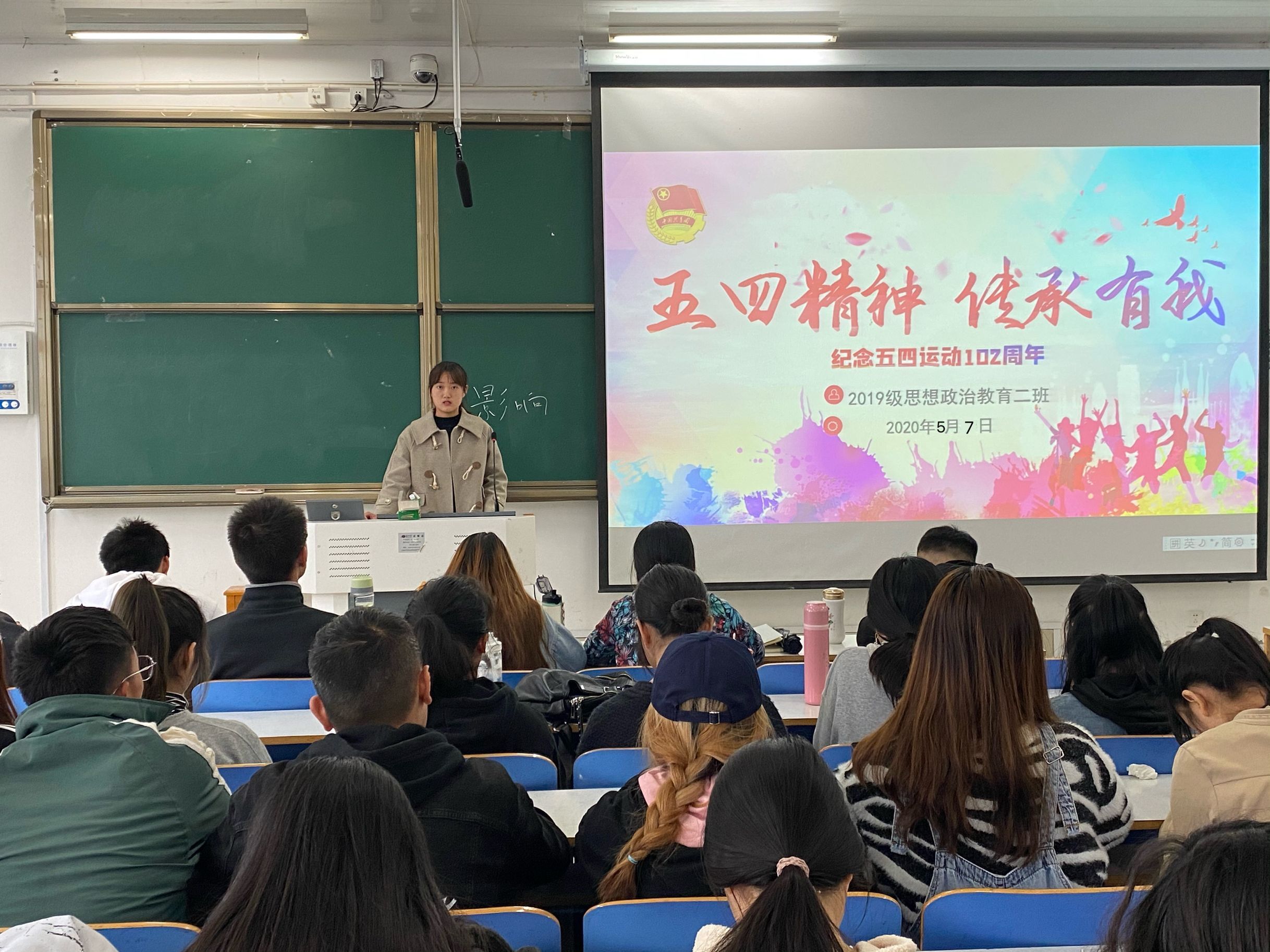 不忘初心来时路,砥砺奋进新征程,为纪念五四运动102周年,5月7日上午,pp电子官网2019级思想政治教育二班于社科楼516教室召开“五四精神 传承有我”主题团课。2019级思想政治教育二班全体成员共同参会。会议由团支书孙雅娴主持。