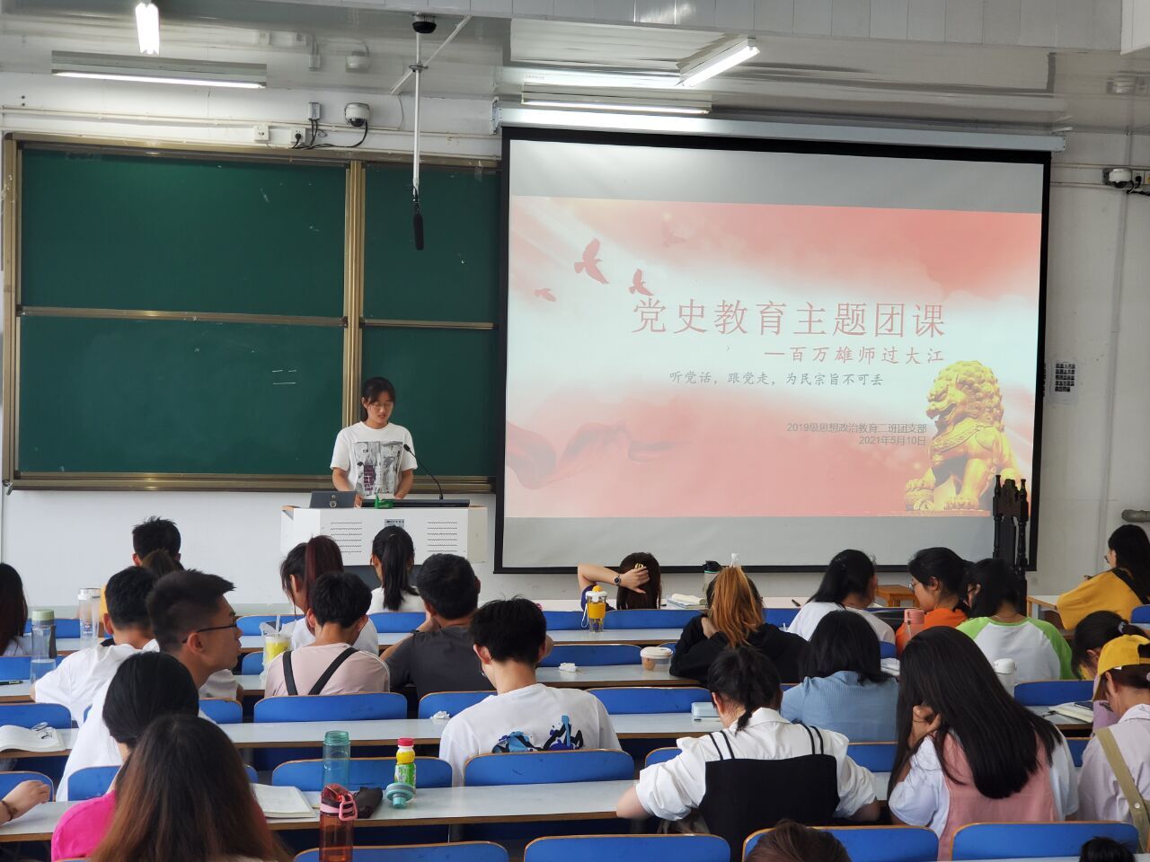 为提高学生思想站位,强化责任担当,5月10日上午,pp电子官网2019级思想政治教育二班在社科楼516教室召开“百万雄师过大江”党史教育主题团课。2019级思想政治教育二班全体成员共同参会。会议由团支书孙雅娴主持。