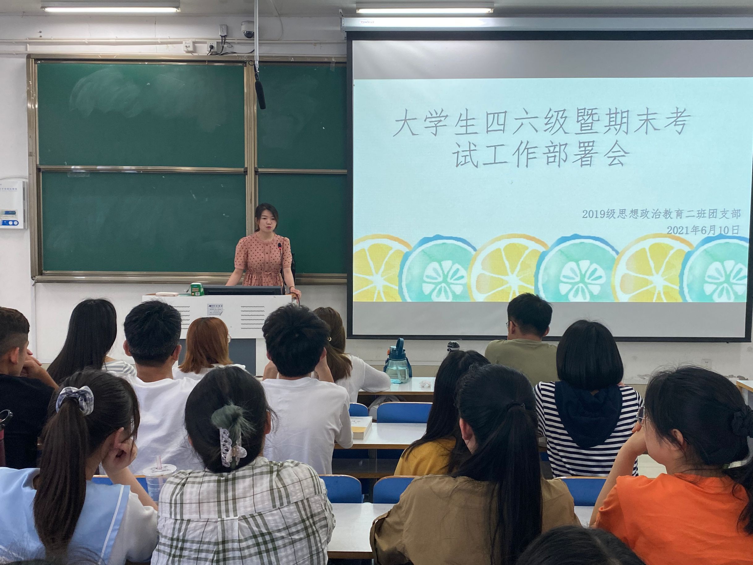 为严肃考风考纪,营造良好的学习、考试氛围,6月10日上午,pp电子官网2019级思想政治教育二班在社科楼516教室召开大学生四六级暨期末考试部署会。团委老师陶青青及2019级思想政治教育二班全体成员共同参会。会议由陶青青主持。