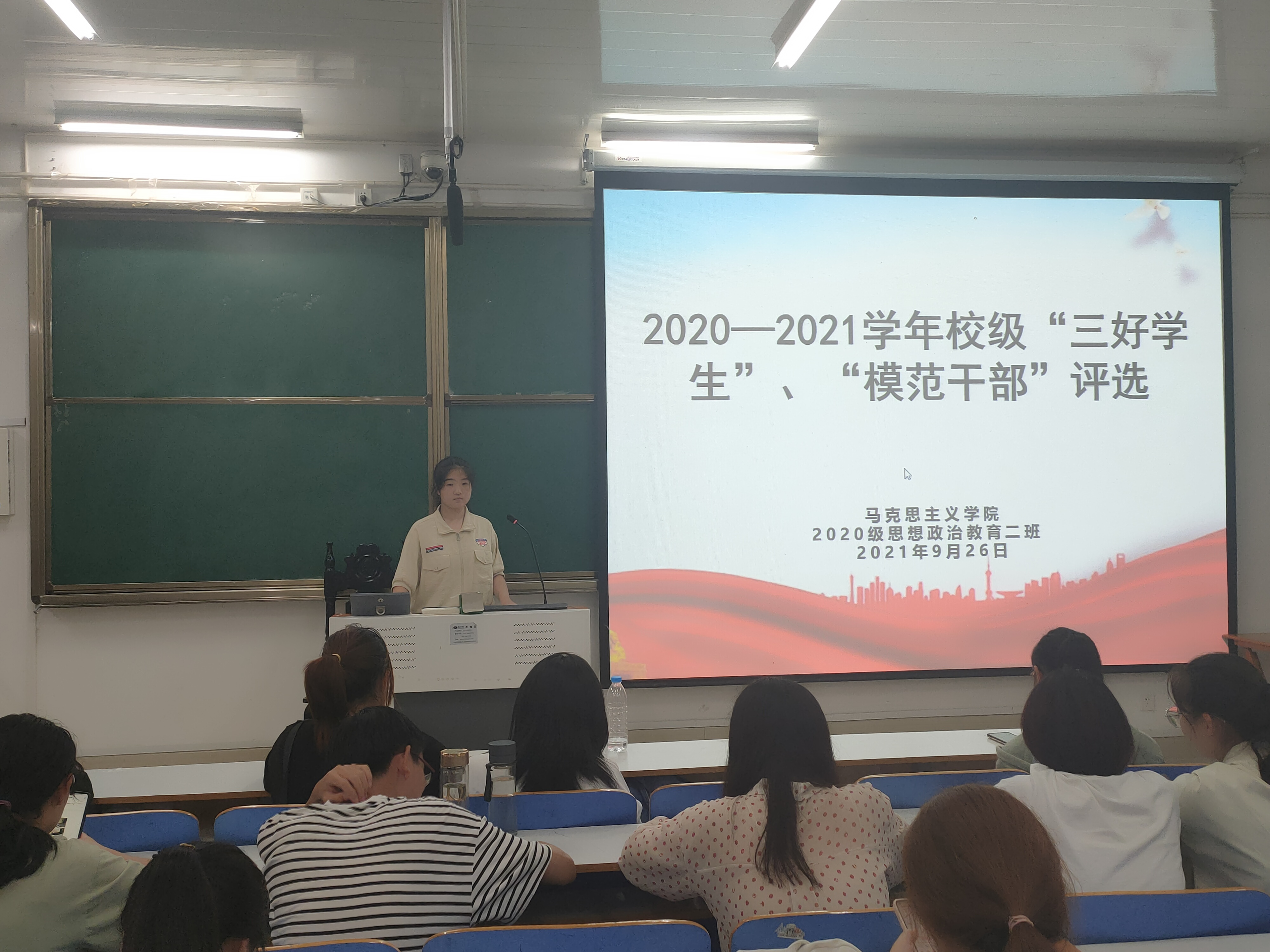9月26日晚上,pp电子官方网站2020级思想政治教育二班“三好学生”“模范干部”评选会在社科楼514教室顺利召开。二班全体同学参与本次会议。会议由班长孙雪主持。