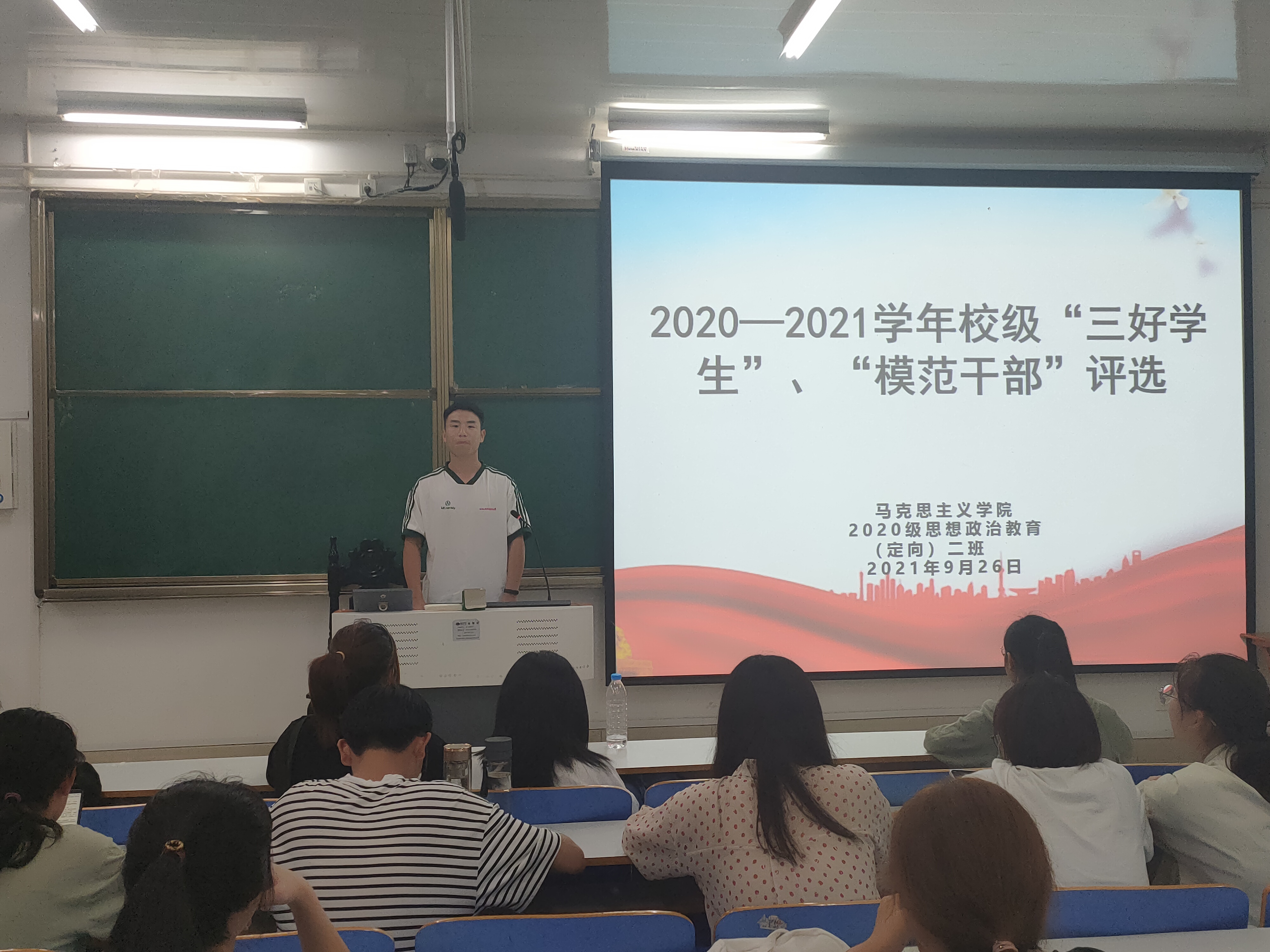 9月26日晚上,pp电子官方网站2020级思想政治教育定向二班“三好学生”“模范干部”评选会在社科楼514教室顺利召开。定向二班全体同学参与本次会议。