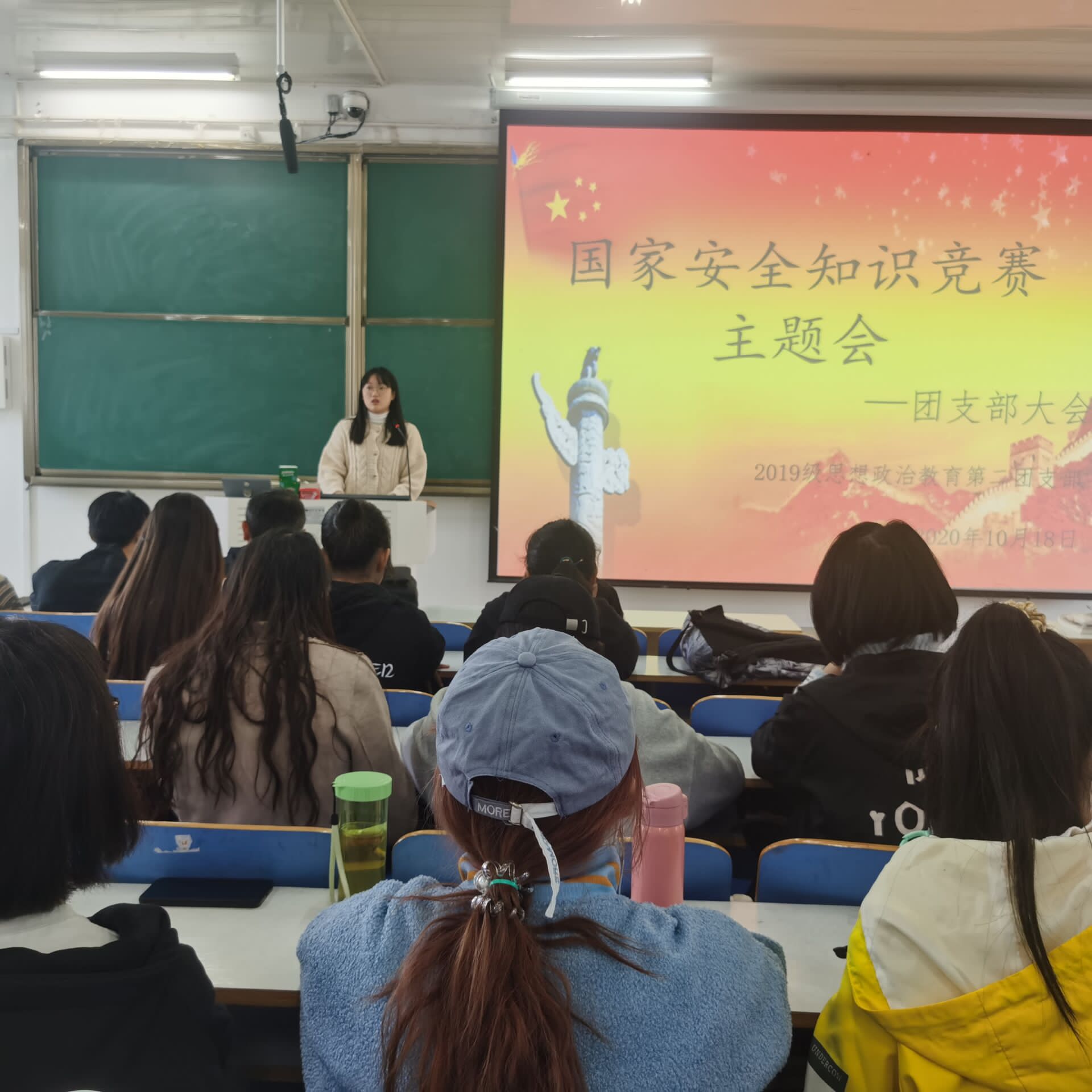 10月19日下午,pp电子官方网站2019级思想政治教育二班在社科楼516教室召开“国家安全知识竞赛”主题团课。2019级思想政治教育二班全体成员共同参会。会议由团支书孙雅娴主持。
