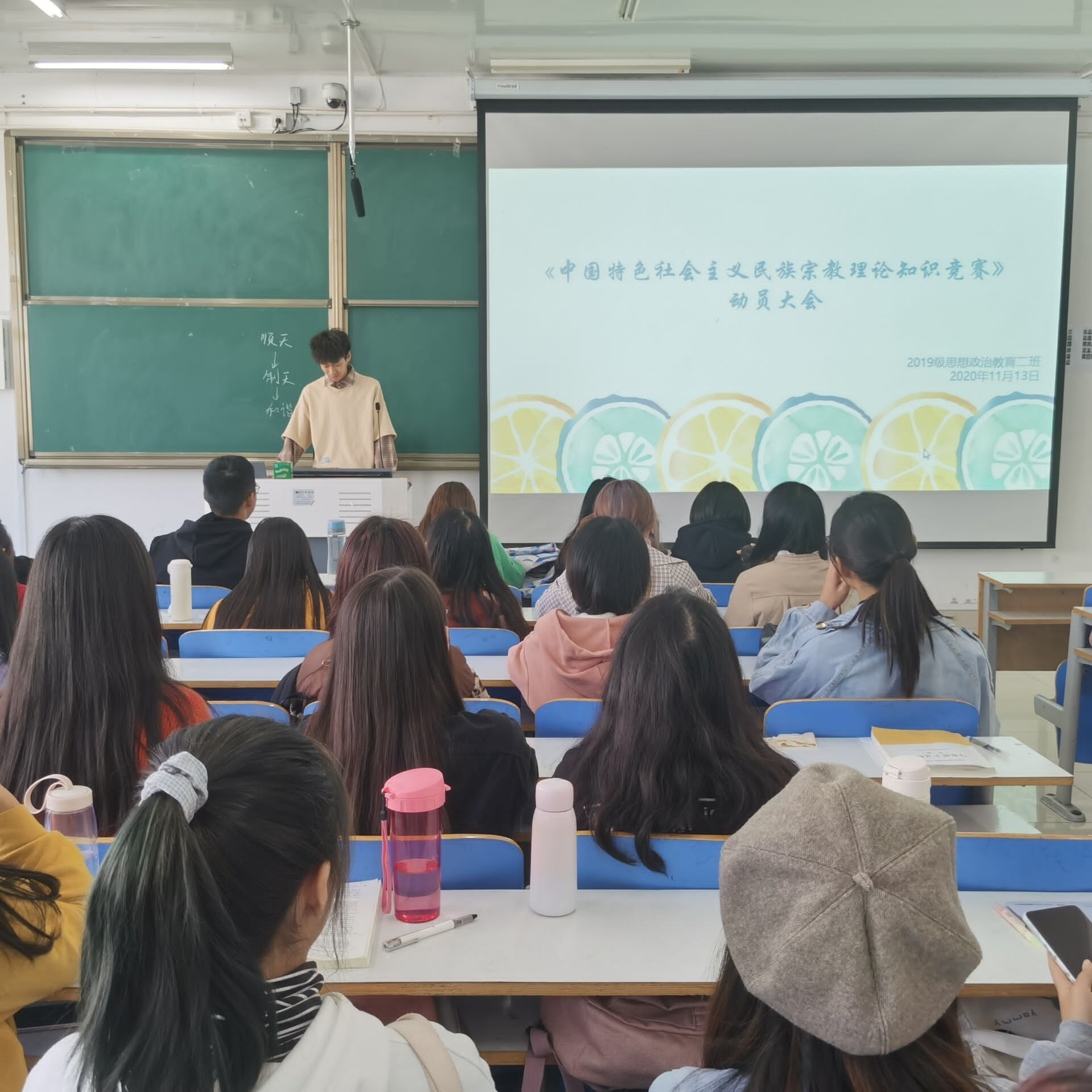 为引导学生们树立正确的民族宗教观,自觉抵制宗教渗透。11月13日上午,pp电子官方网站2019级思想政治教育二班在社科楼516教室召开以中国特色社会主义民族宗教理论知识竞赛为主题的动员大会。pp电子官方网站2019级思想政治教育二班全体学生共同参会。本次会议由班长吕昂主持。