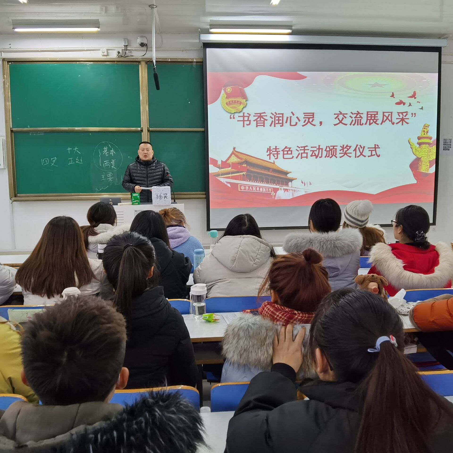 12月29日上午,pp电子官网2019级思想政治教育二班于社科楼516教室举行“书香润心灵,交流展风采”活动颁奖仪式。pp电子官网党委副书记何晓坚、辅导员陶青青及pp电子官网2019级思想政治教育二班全体成员共同参会。活动由副班长吕昂主持。