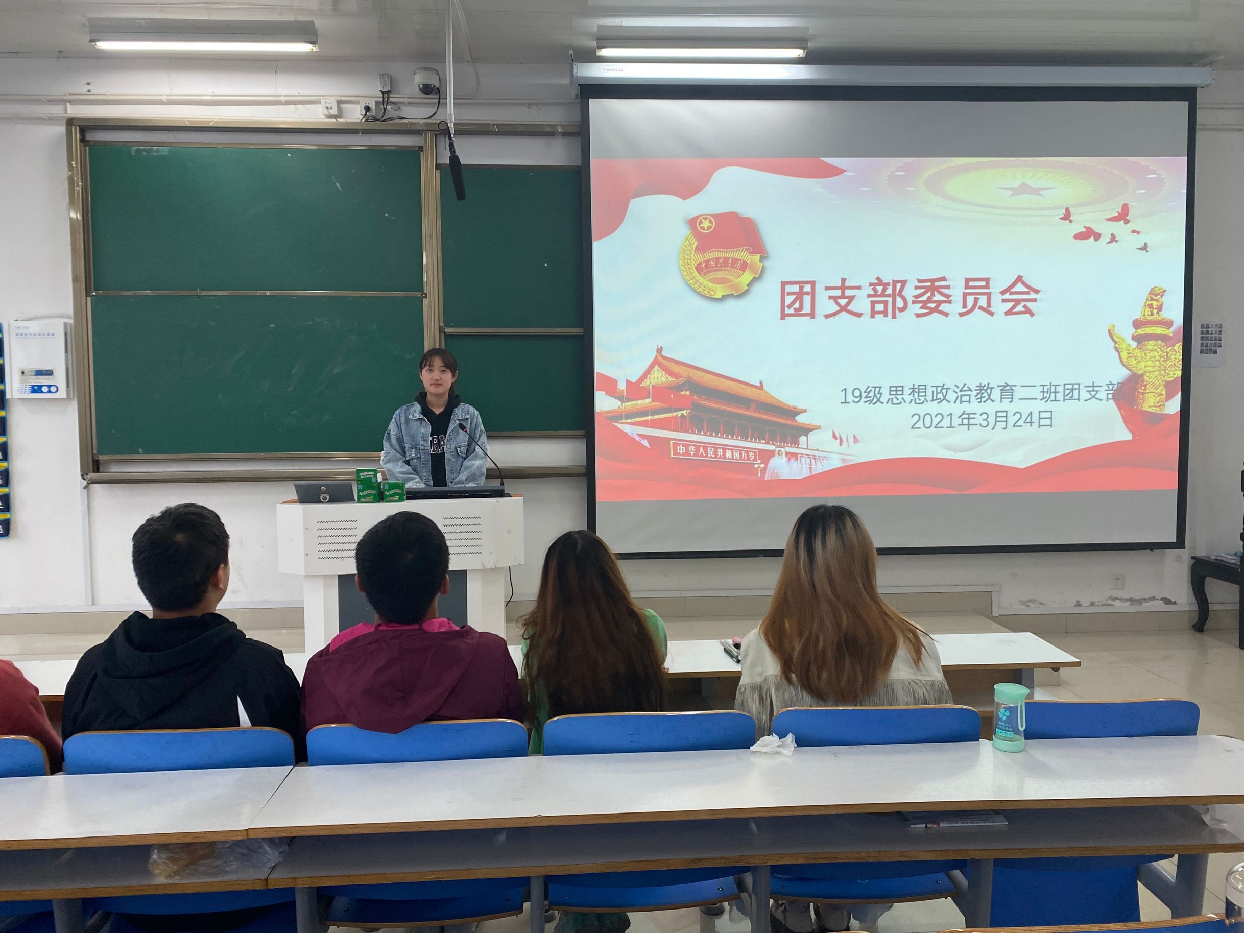 3月24日上午,pp电子官方网站2019级思想政治教育二班于社科楼516教室召开团支部委员会。2019级思想政治教育二班全体班委共同参会。会议由团支书孙雅娴主持。