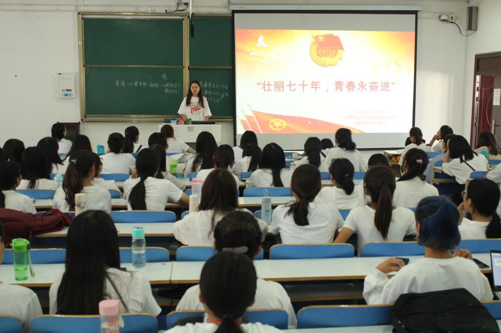为纪念新中国成立70周年,进一步激发同学们的爱国热情,9月26日上午,pp电子官网2018级思想政治教育二班开展了“壮丽七十年,青春永奋进”主题团日活动。2018级思想政治教育二班全体成员共同参加了本次活动。活动由团支书黄子晋主持。