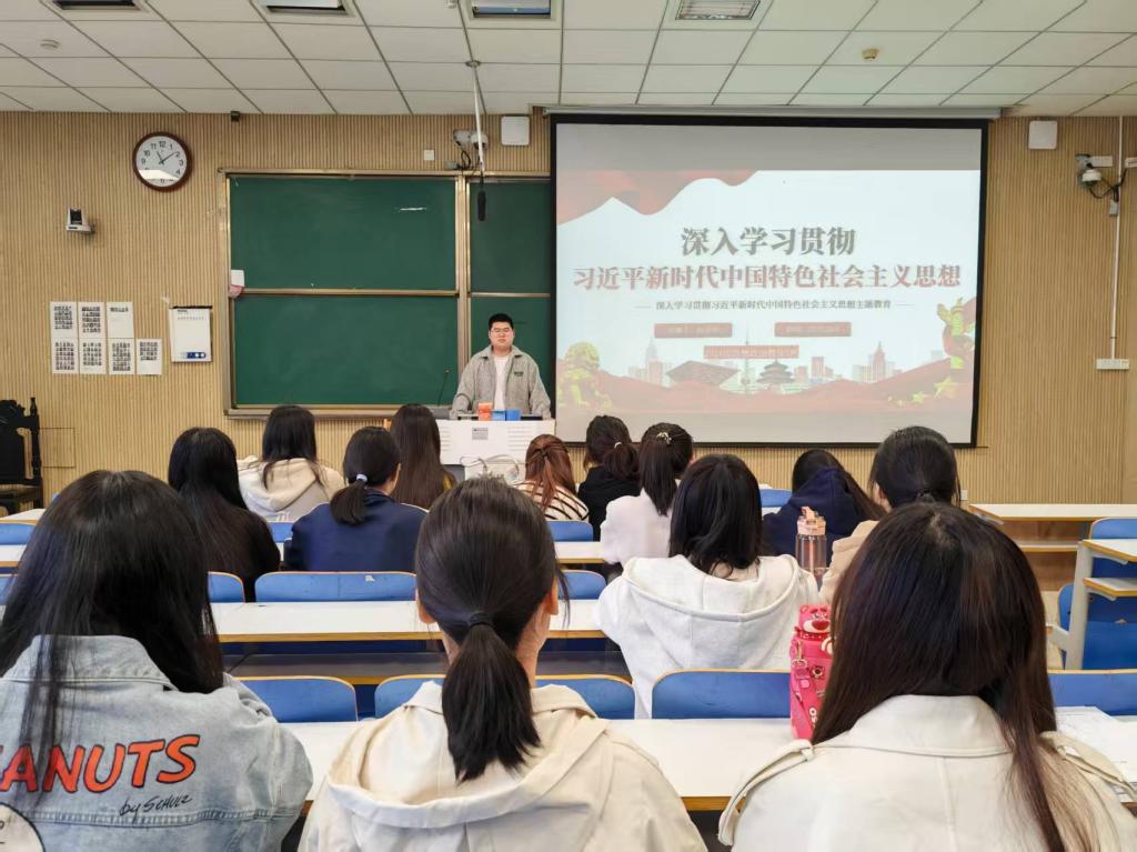 为加强学生理想信念教育,推动习近平新时代中国特色社会主义思想深入人心,pp电子官方网站2024级思想政治教育三班于10月9日在社科楼515组织开展了“深入贯彻习近平思想”主题团课活动。团课由团支书杨迎滨主持,全体同学参加。
