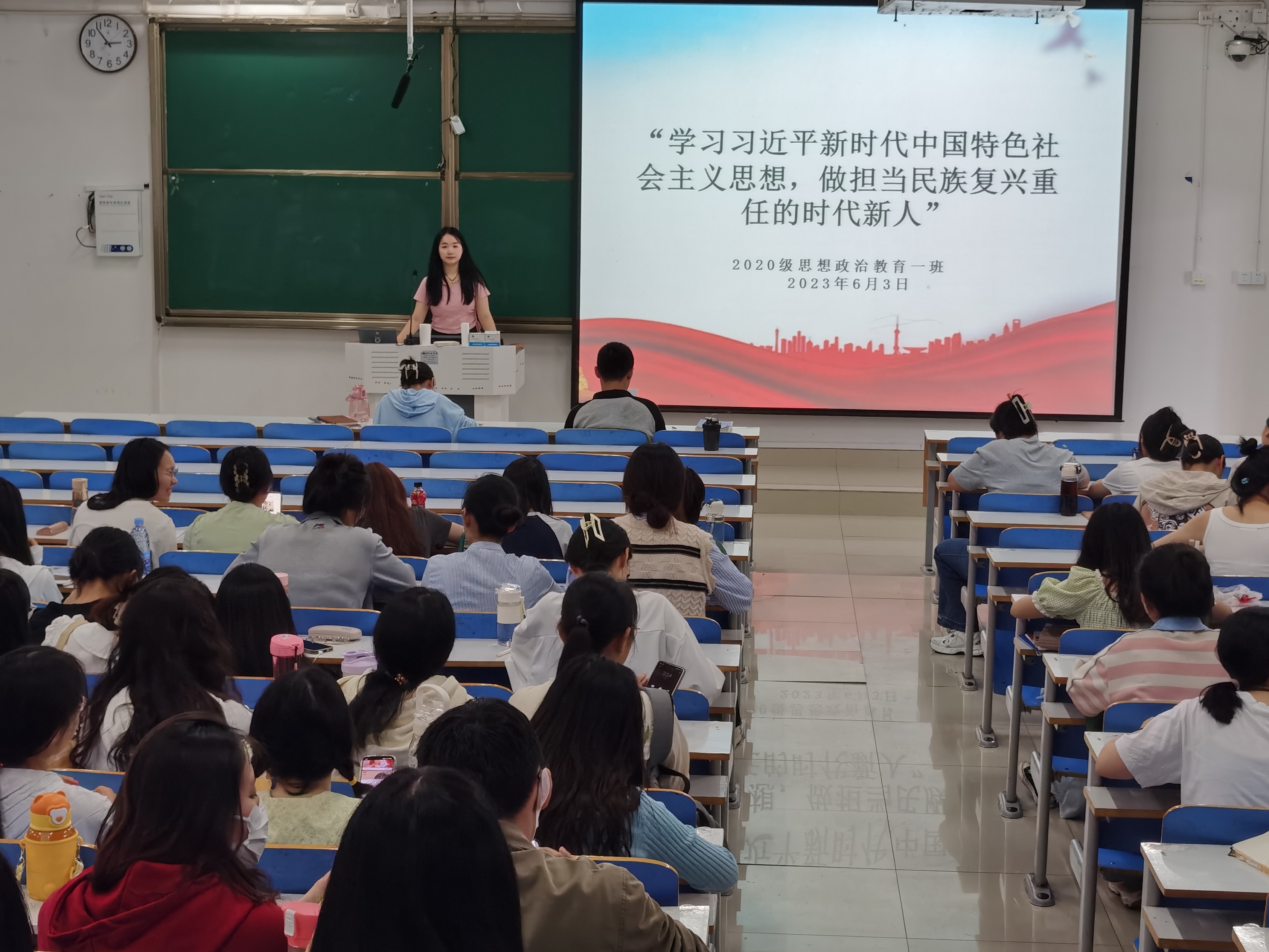 为深入学习习近平新时代中国特色社会主义思想,6月3日下午,pp电子官方网站2020级思想政治教育一班团支部在社科楼514教室开展“学习习近平新时代中国特色社会主义思想,做担当民族复兴重任的时代新人”主题团课,2020级思想政治教育一班全体团员参加了本次团课,团课由团支部书记卢茜雨主持。