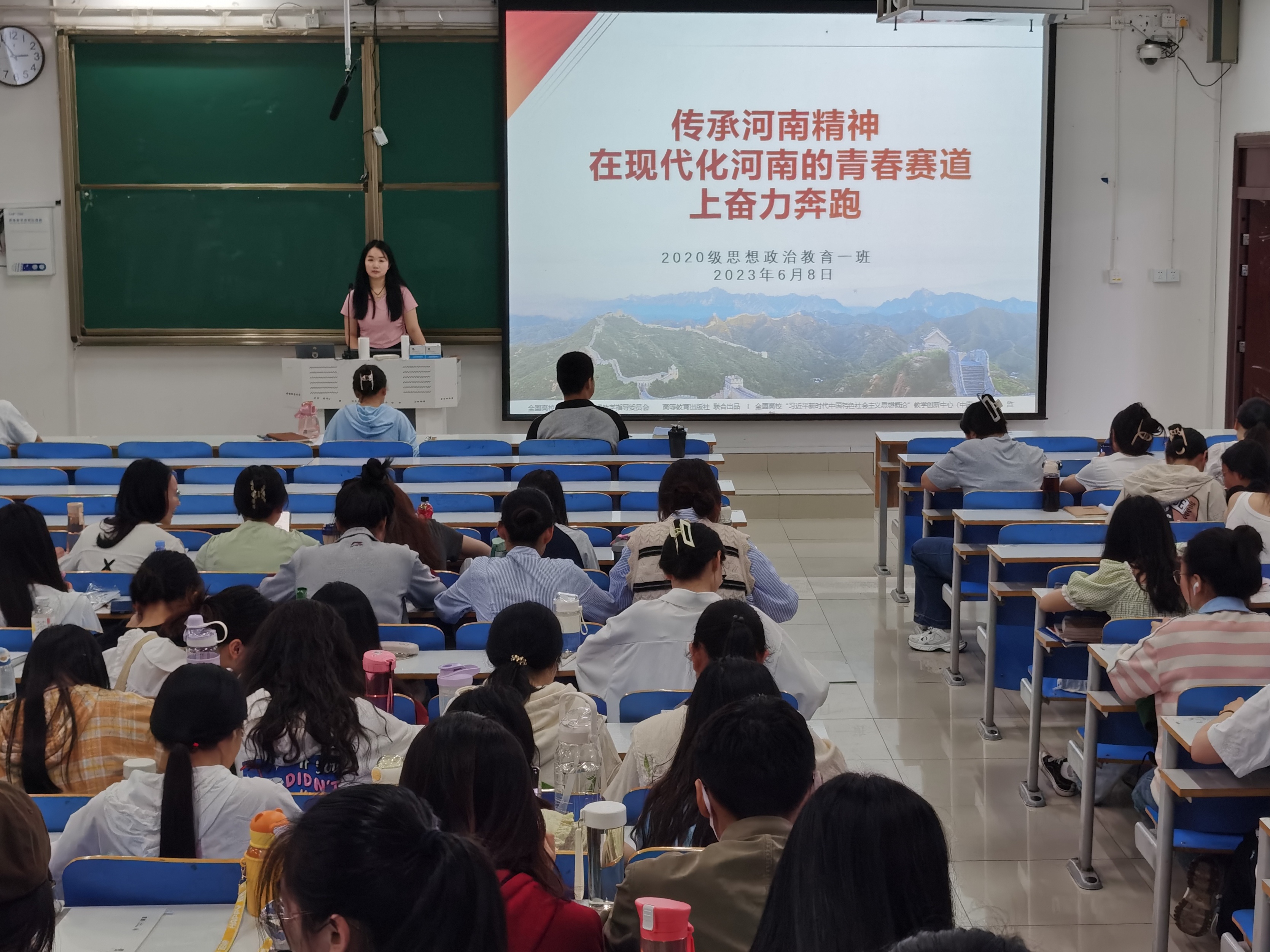 6月8日下午,pp电子官方网站2020级思想政治教育一班团支部在社科楼514教室召开“传承河南精神,在现代化河南的青春赛道上奋力奔跑”团支部大会,2020级思想政治教育一班全体团员参加此次团支部大会。大会由团支部书记卢茜雨主持。