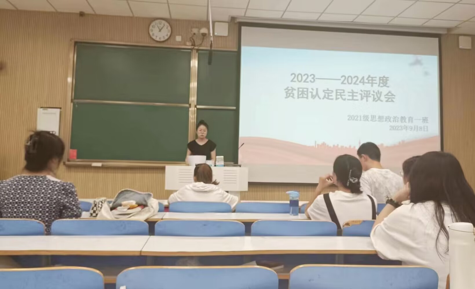 9月8日上午,pp电子官方网站2021级思想政治教育一班在社科楼515教室召开2023——2024年度贫困认定民主评议会。辅导员高小佳及2021级思想政治教育一班评议小组成员共同参加本次会议。评议会由辅导员高小佳主持。