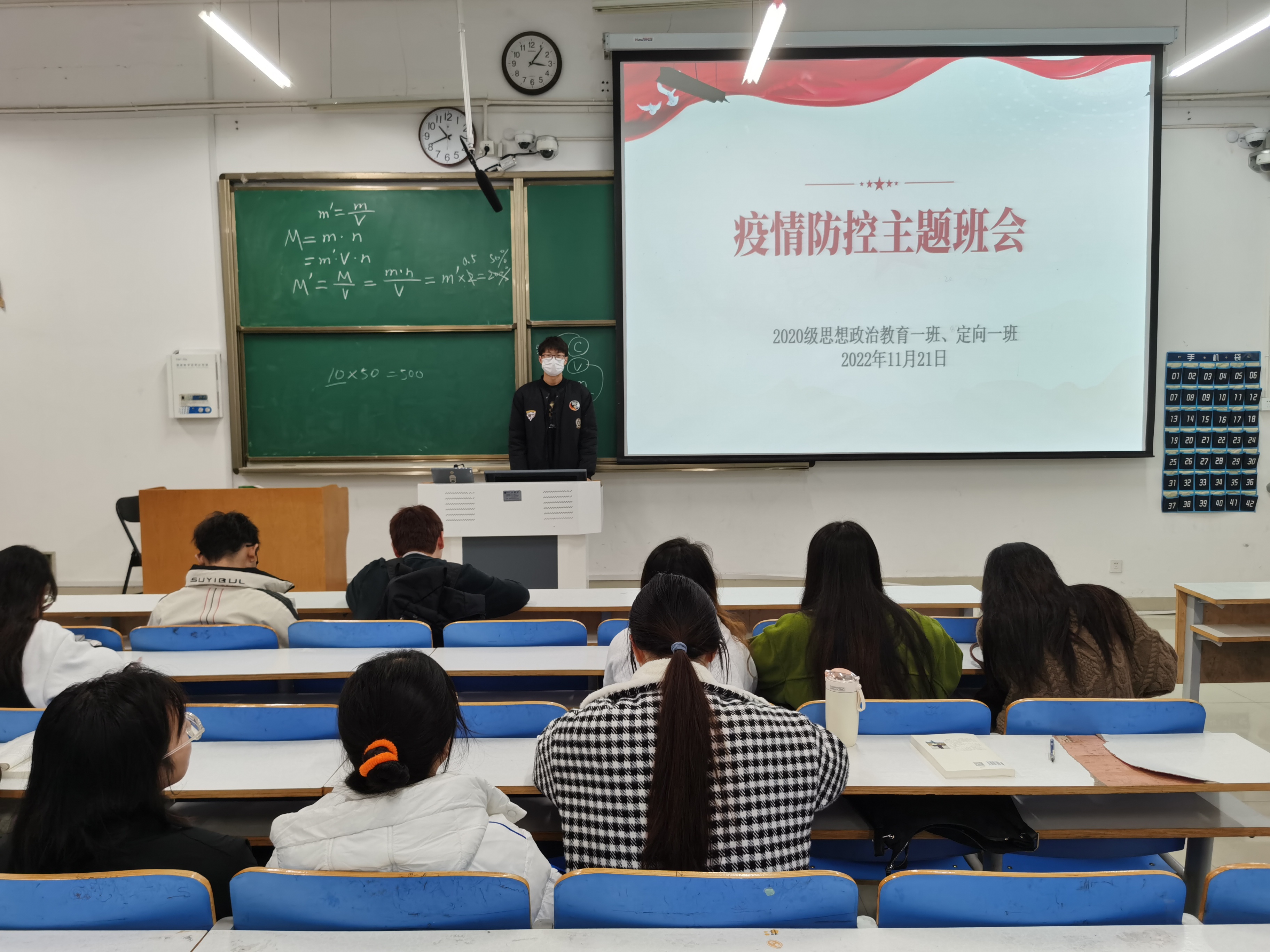 11月21日下午,pp电子官方网站2020级思想政治教育一班、定向一班在社科楼415教室召开“疫情防控”主题班会。pp电子官方网站2020级思想政治教育一班、定向一班全体同学参加了本次班会,班会由副班长白帅豪主持。