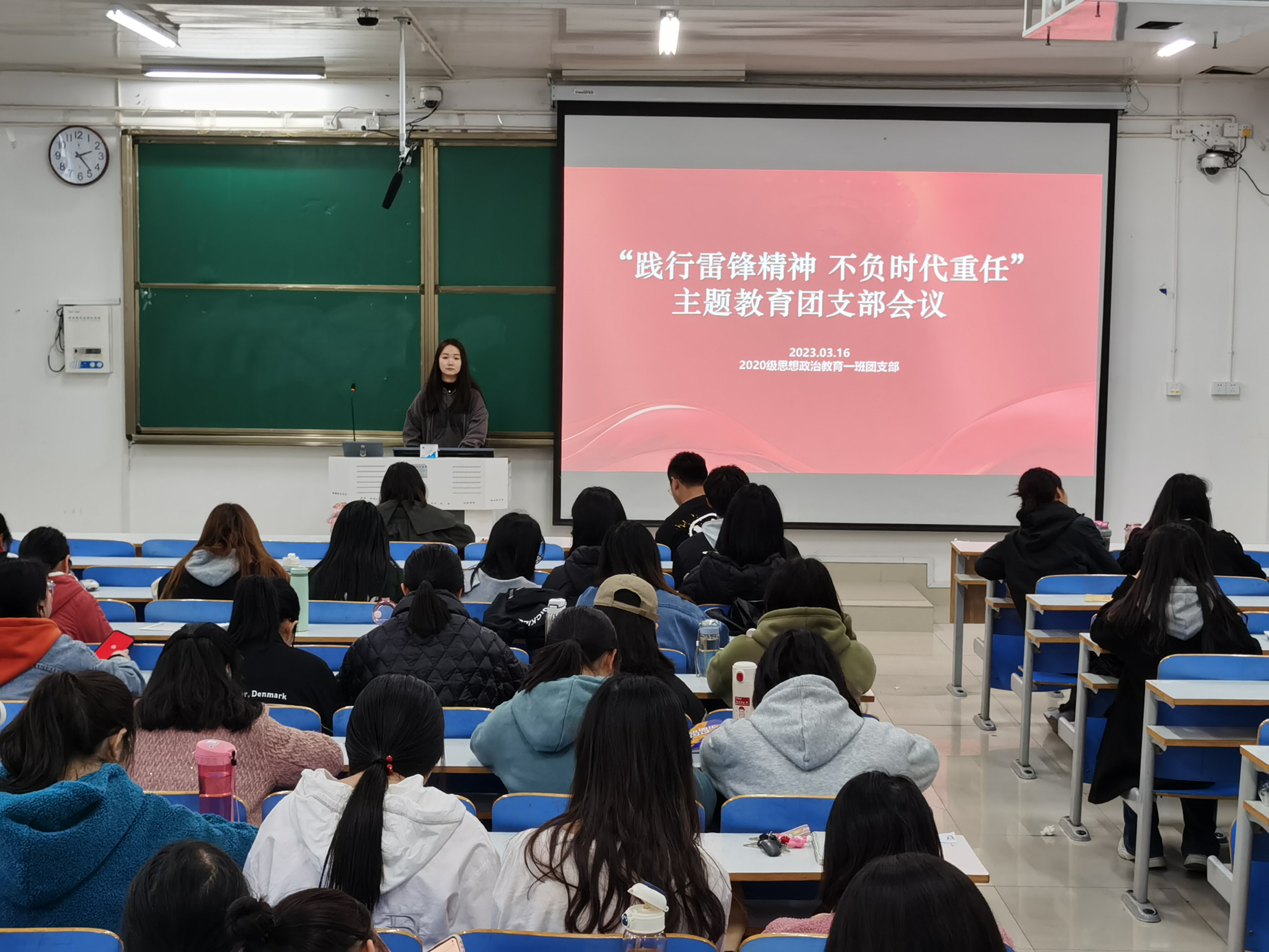 为贯彻落实习近平总书记关于学习雷锋精神和开展志愿服务工作的重要指示精神,加强团支部同学的思想品德教育,3月16日下午,pp电子官方网站2020思想政治教育一班在社科楼514教室开展“践行雷锋精神,不负时代重任“主题团课。2020级思想政治教育一班全体团员参加此次团课。团课由团支部书记卢茜雨主持。