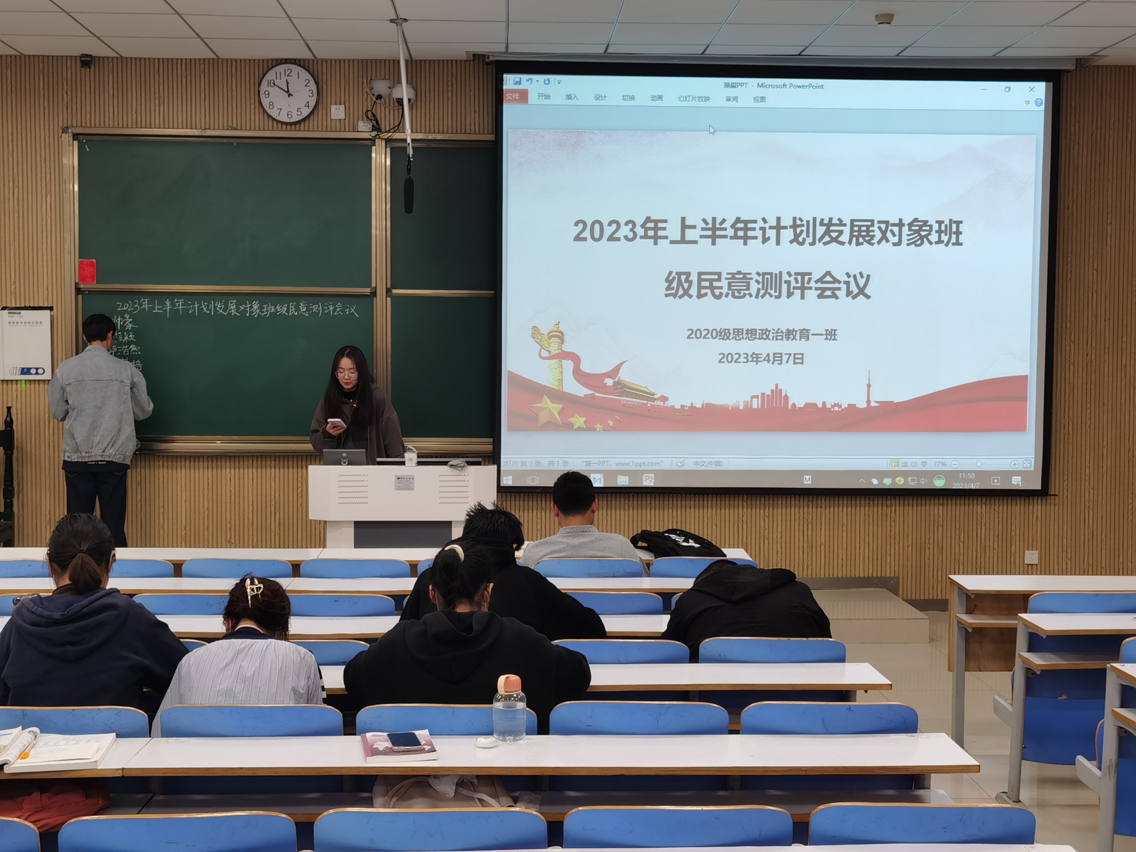 4月7日上午,pp电子官方网站2020级思想政治教育一班在社科楼515教室召开2023年上半年计划发展对象班级民意测评会议。2020级思想政治教育一班全体同学参加了本次会议,会议由团支部书记卢茜雨主持。