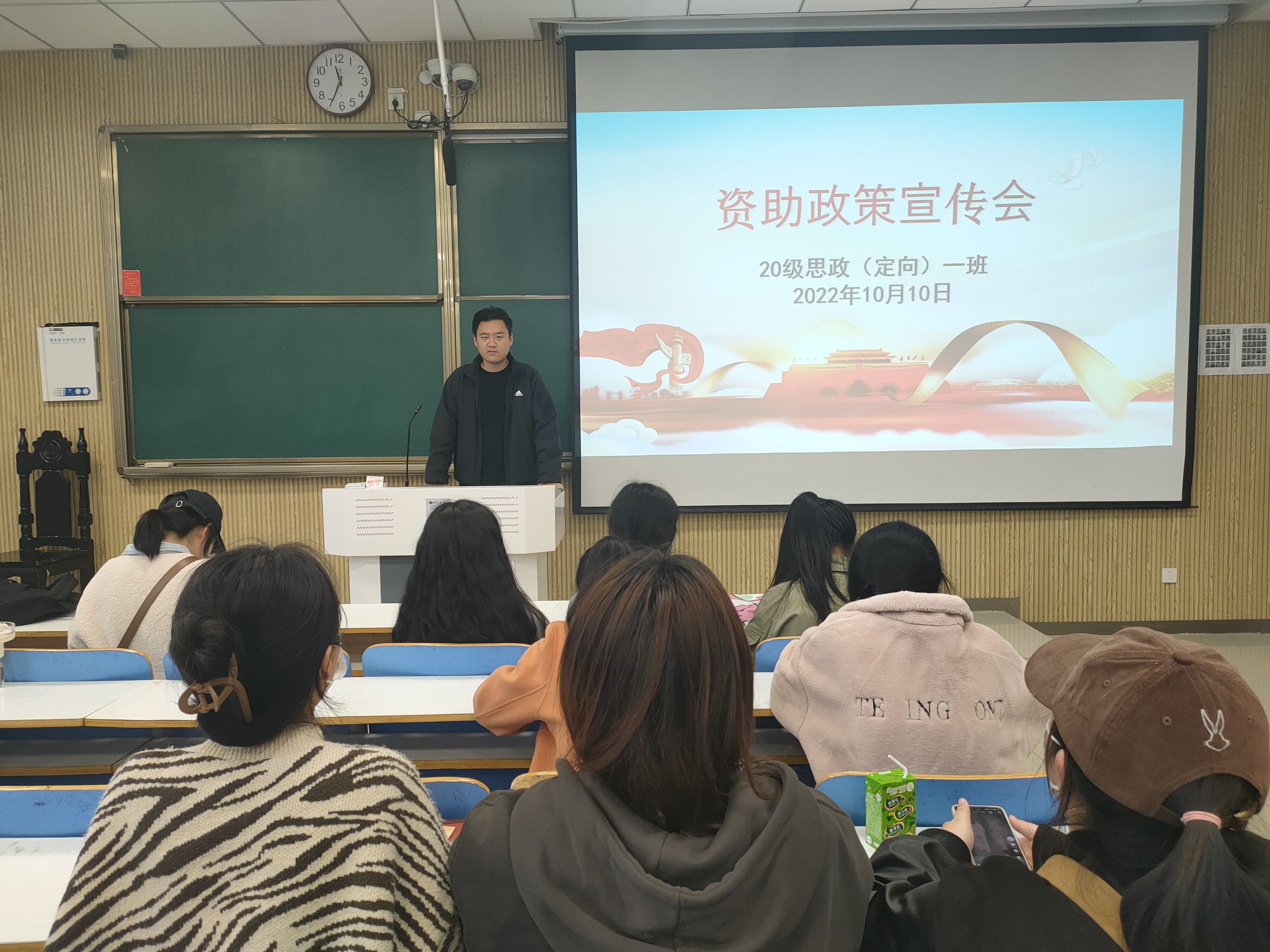 10月10日上午,pp电子官方网站2020级思想政治教育定向一班在社科楼515教室顺利举办国家资助政策宣传会。定向一班全体学生聆听了此次会议。