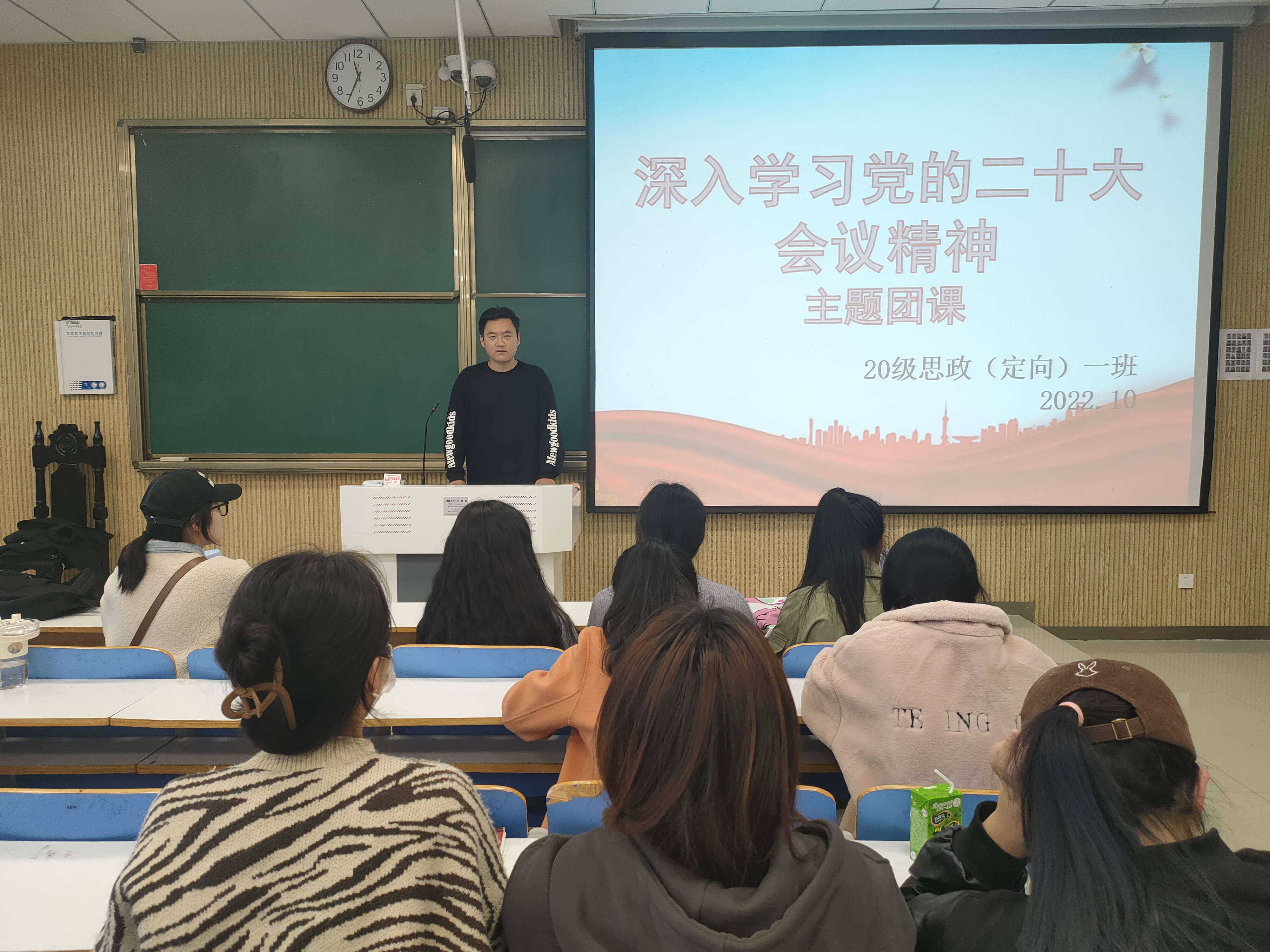 10月28日上午,pp电子官方网站2020级思想政治教育定向一班在社科楼515顺利举办深入学习党的二十大精神主题团课。定向一班全体学生聆听了此次团课。