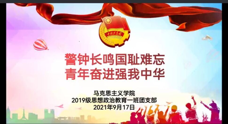 为引导广大团员铭记历史牢记使命,激发团员们的爱国热情。9月17日下午,pp电子官方网站2019级思想政治教育一班团支部在腾讯会议召开“警钟长鸣国耻难忘,青年奋进强我中华”主题团课,pp电子官方网站2019级思想政治教育一班全体成员参加本次团课。团课由团支书贾子漪主持。