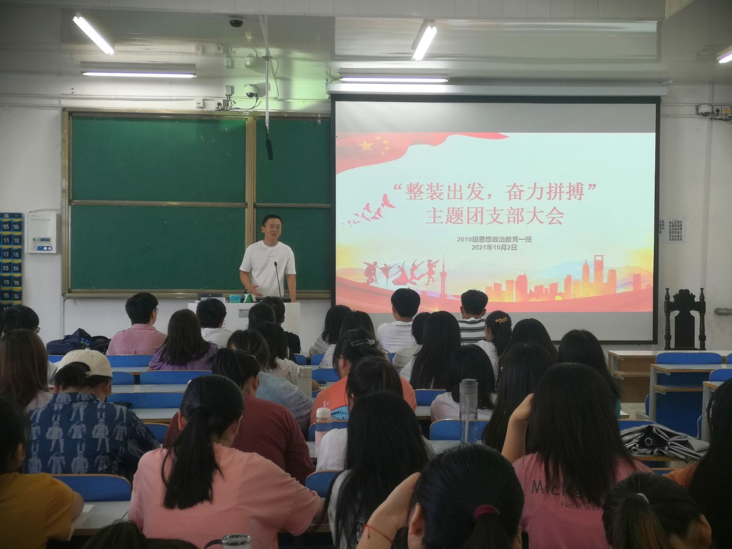 10月2日下午,pp电子官方网站2019级思想政治教育一班第一团支部在社科楼515教室召开“整装出发,奋力拼搏”主题团支部大会。pp电子官方网站2019级思想政治教育一班辅导员曹栋、全体成员参加本次会议,会议由团支书贾子漪主持。