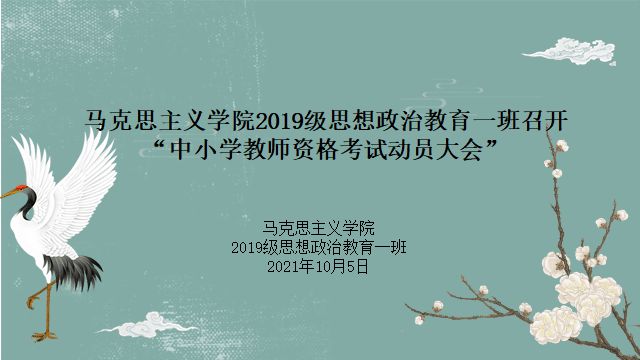 10月5日上午,pp电子官方网站2019级思想政治教育一班在社科楼516教室召开“中小学教师资格考试动员大会”。2019级思想政治教育一班全体成员参加本次会议,会议由副班长王民主持。