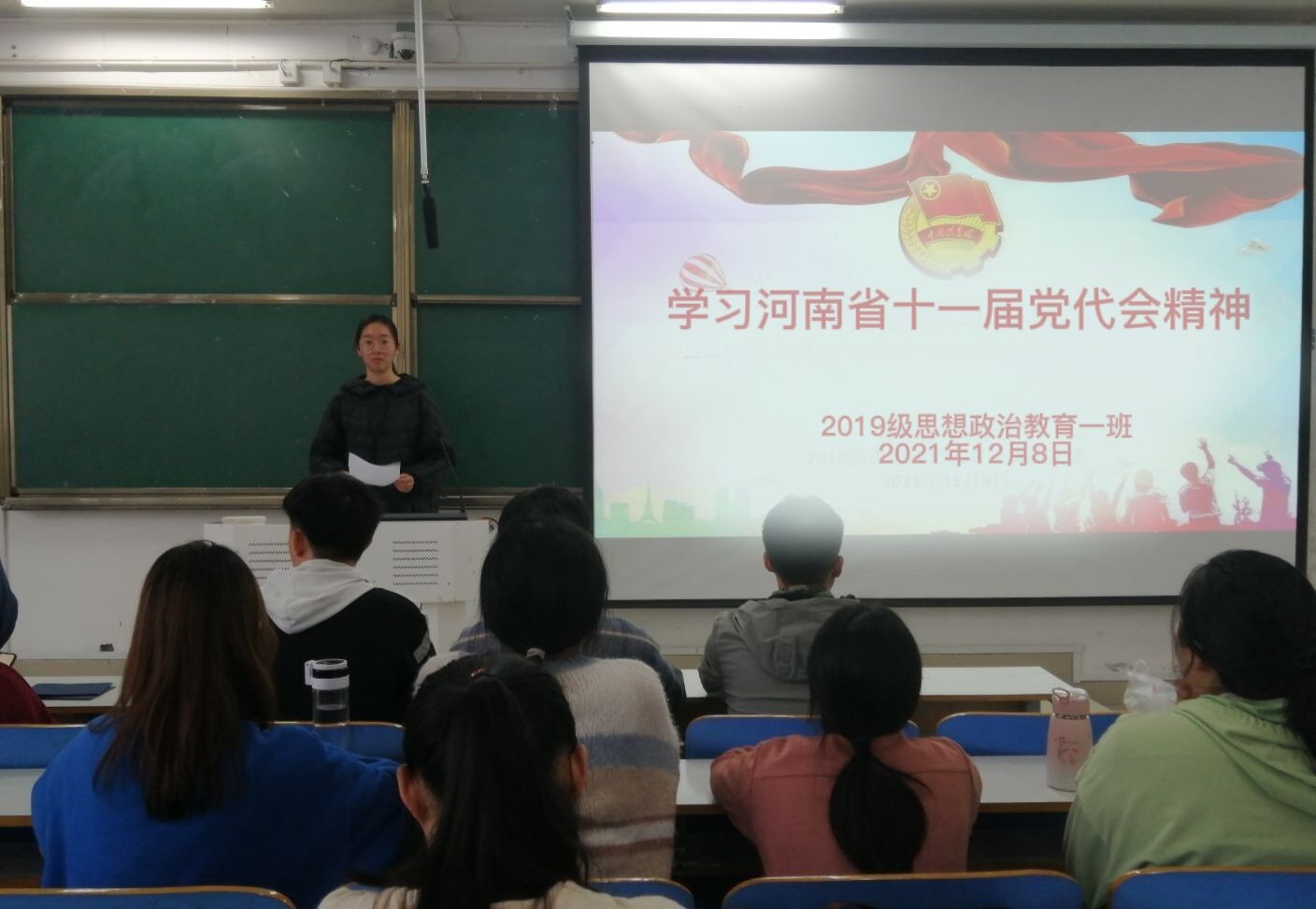 12月8日上午,pp电子官方网站2019级思想政治教育一班第一团支部在社科楼514教室召开“学习河南省第十一次党代会”,2019级思想政治教育一班第一团支部全体团员参加本次会议。会议由班长贾子漪主持。