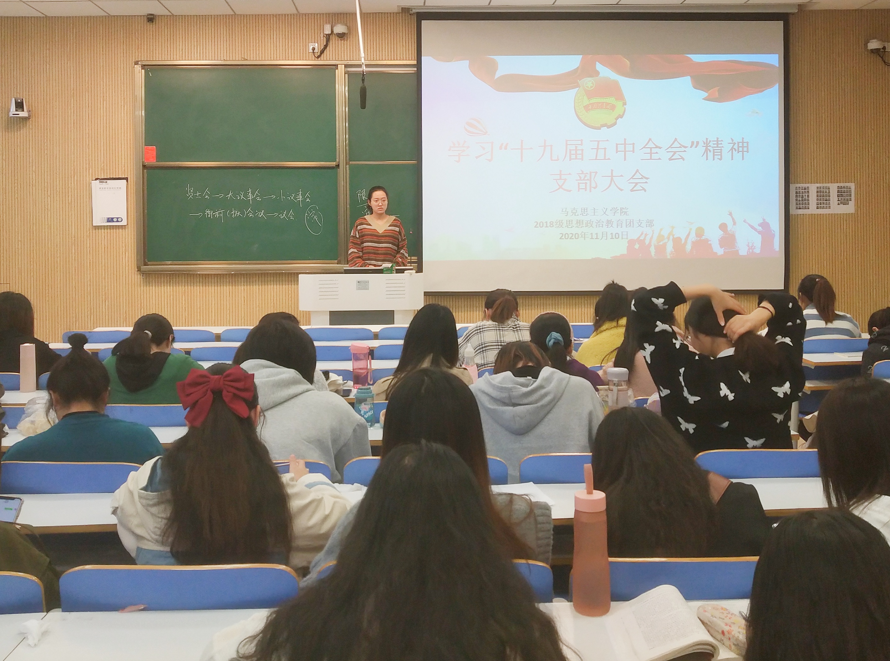 11月10日上午,pp电子官方网站2018级思想政治教育团支部在社科楼515教室顺利召开主题为“学习十九届五中全会精神”支部大会。会议由2018级思想政治教育第二团支部书记黄子晋主持。