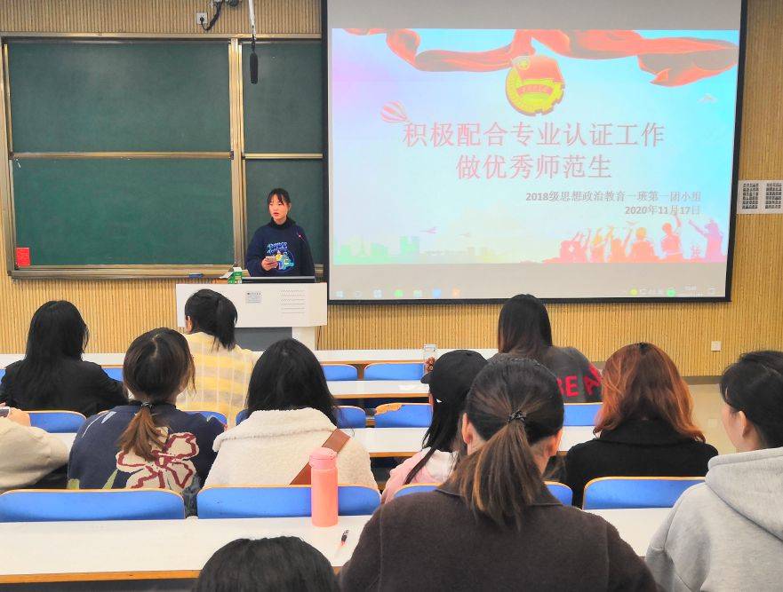 11月17日上午,pp电子官方网站2018级思想政治教育一班第一团小组在社科楼515教室顺利开展“积极配合专业认证工作,做优秀师范学生”主题团会。第一团小组全体成员共同参加此次团会。会议由小组成员张玉主持。