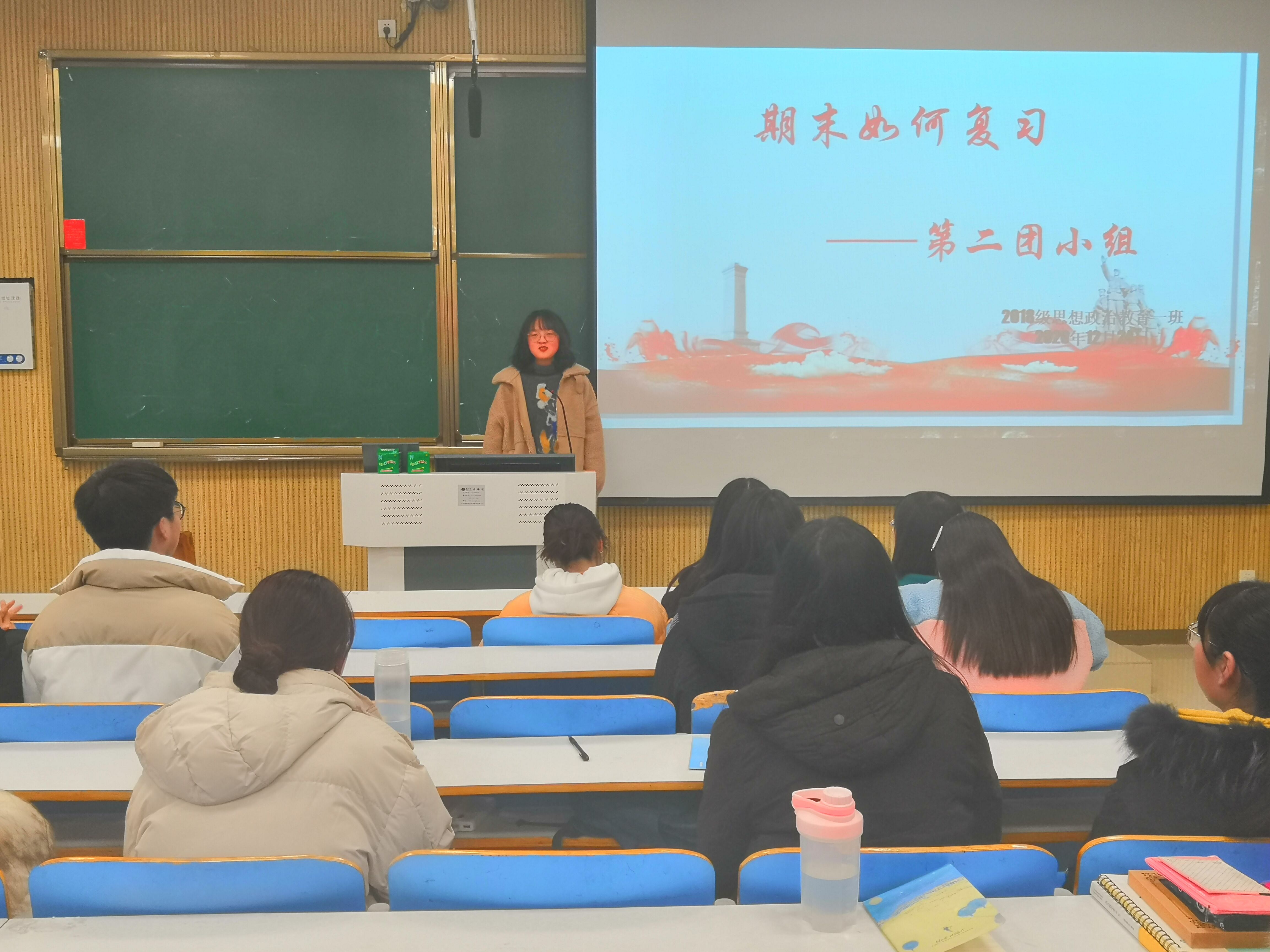 12月24日下午,pp电子官方网站2018级思想政治教育一班第二团小组在社科楼515教室顺利开展“期末如何复习”主题团会。第二团小组全体成员共同参加此次团会。此次会议由小组成员李祎主持。