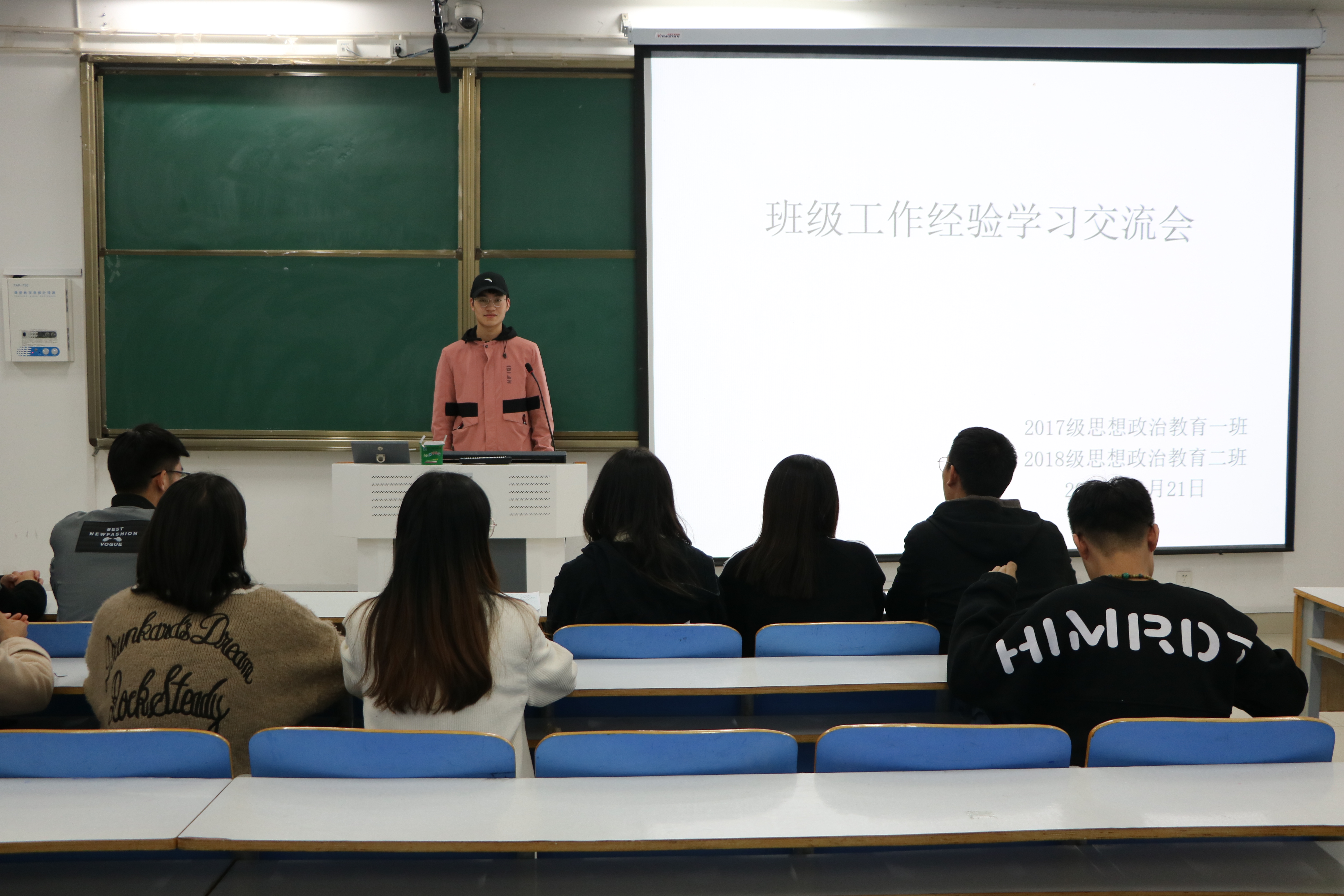 为强化班委队伍建设,优化班级管理体系,11月21日晚,2017级思想政治教育一班携手2018级思想政治教育二班于社科楼514教室召开班级工作经验交流会。会议由2017级思想政治教育一班班长邹创主持,两班班委全体参与。