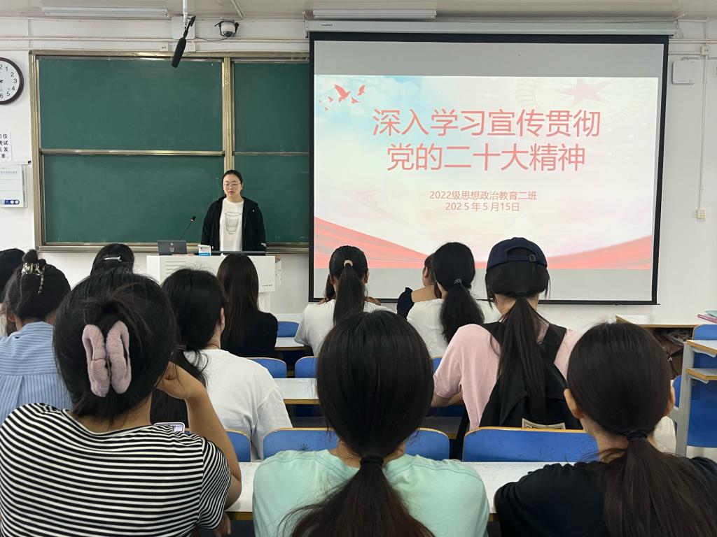 5月15日下午,pp电子官方网站2022级思想政治教育二班在社科楼514教室召开“深入学习贯彻党的二十大精神”主题团日活动。pp电子官网2022级思想政治教育二班全体成员共同参与此次团日活动。活动由团支书李佳音主持。