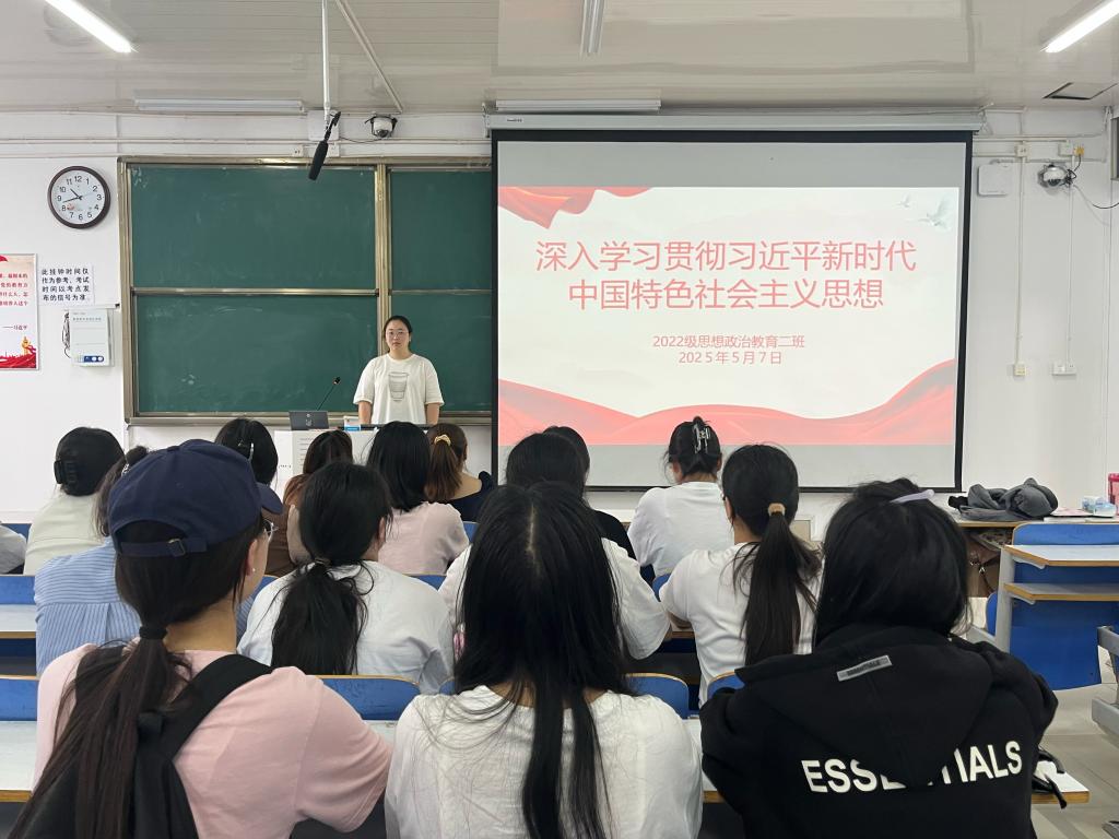 5月7日下午,pp电子官方网站2022级思想政治教育二班在社科楼514教室召开“深入学习贯彻习近平新时代中国特色社会主义思想”主题团课。pp电子官网2022级思想政治教育二班全体成员共同参与此次团课。团课由团支书李佳音主持。