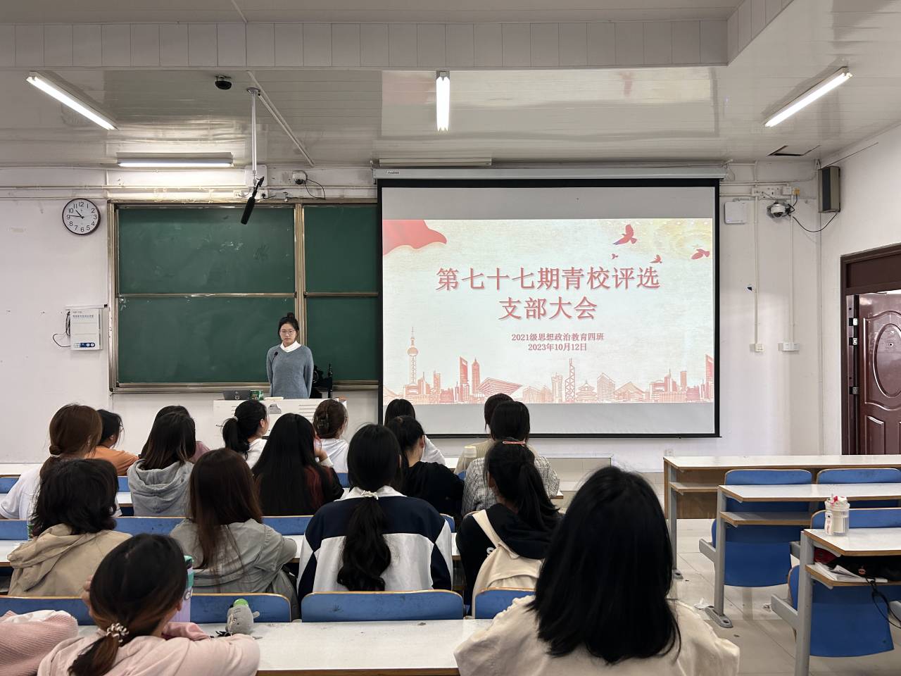 10月12日下午,pp电子官方网站2021级思想政治教育四班在社科楼515教室开展第77期“青校”评选团支部大会。pp电子官方网站2021级思想政治教育四班全体团员共同参与本次会议。会议由团支书刘珂含主持。