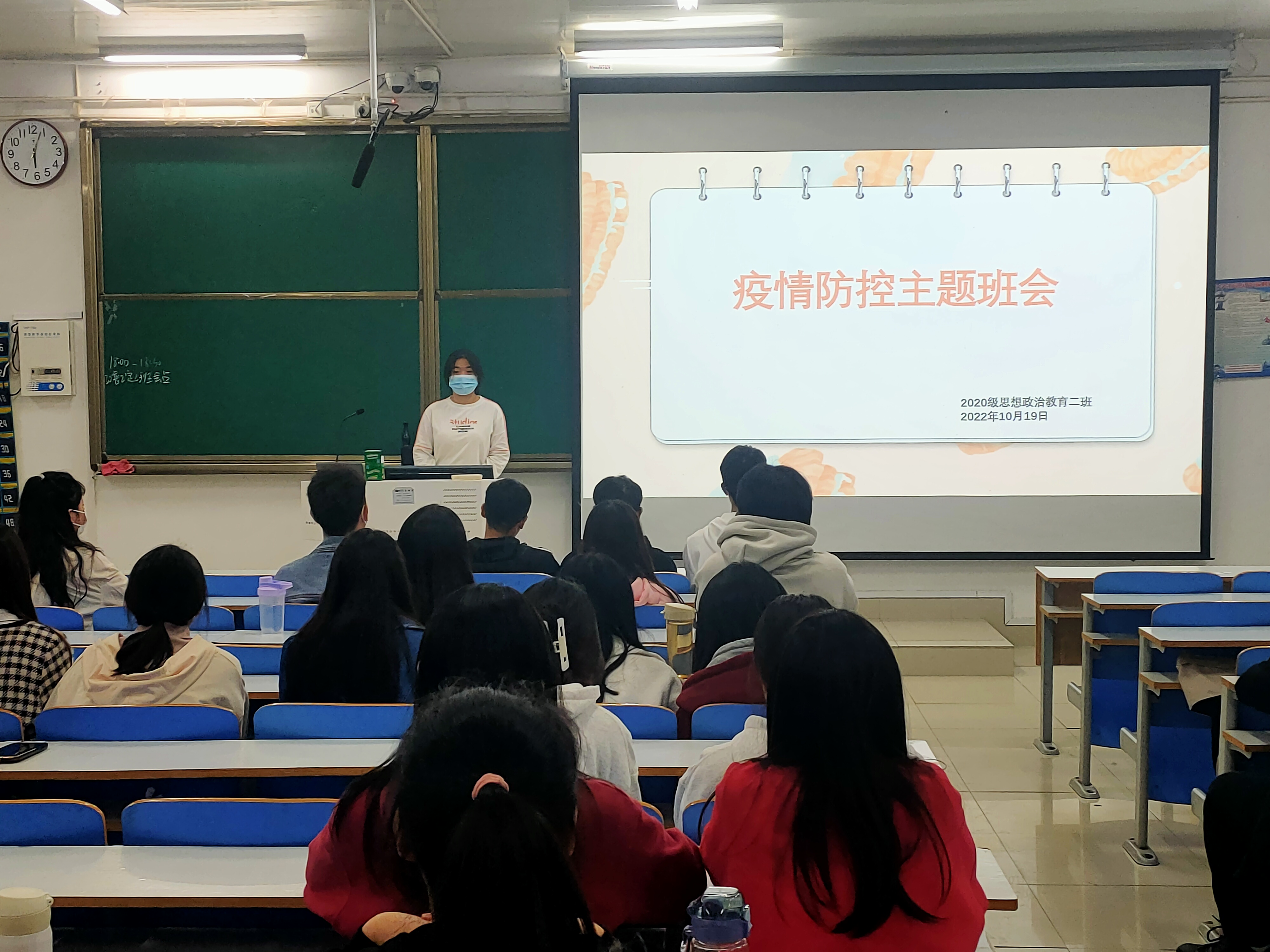 鉴于当前疫情防控的严峻形势,为进一步提高同学们对疫情防控工作的重视程度,10月19日下午,pp电子官方网站2020级思想政治教育二班、定向二班在社科楼514教室召开疫情防控主题班会。二班、定向二班全体同学参与此次会议。班会由班长孙雪主持。