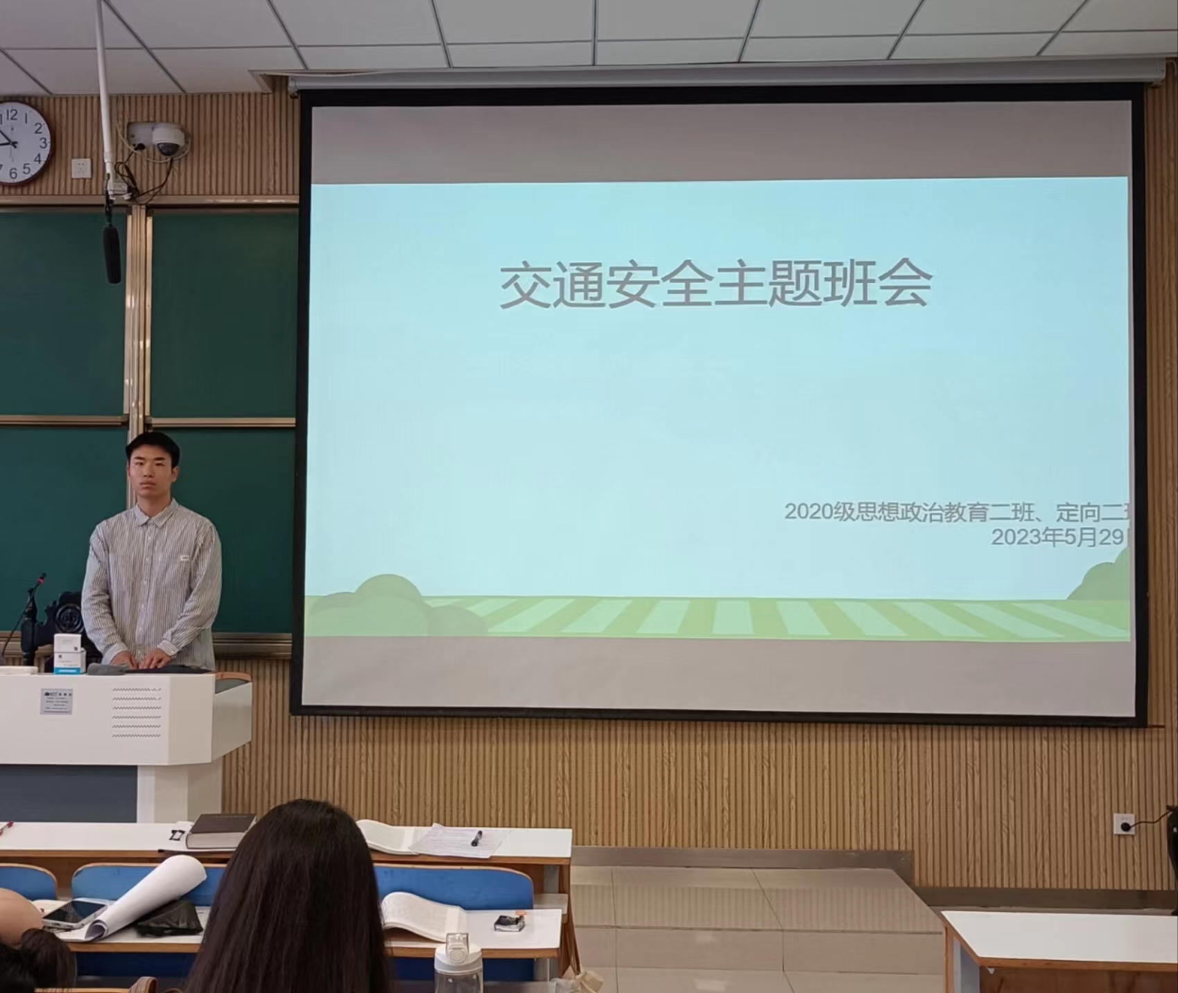 为进一步加强交通安全主题教育,增强同学们的交通安全意识,5月29日下午,pp电子官方网站2020级思想政治教育二班、定向二班在社科楼514教室召开交通安全主题班会。二班、定向二班全体同学共同参会。会议由班长高红凯主持。