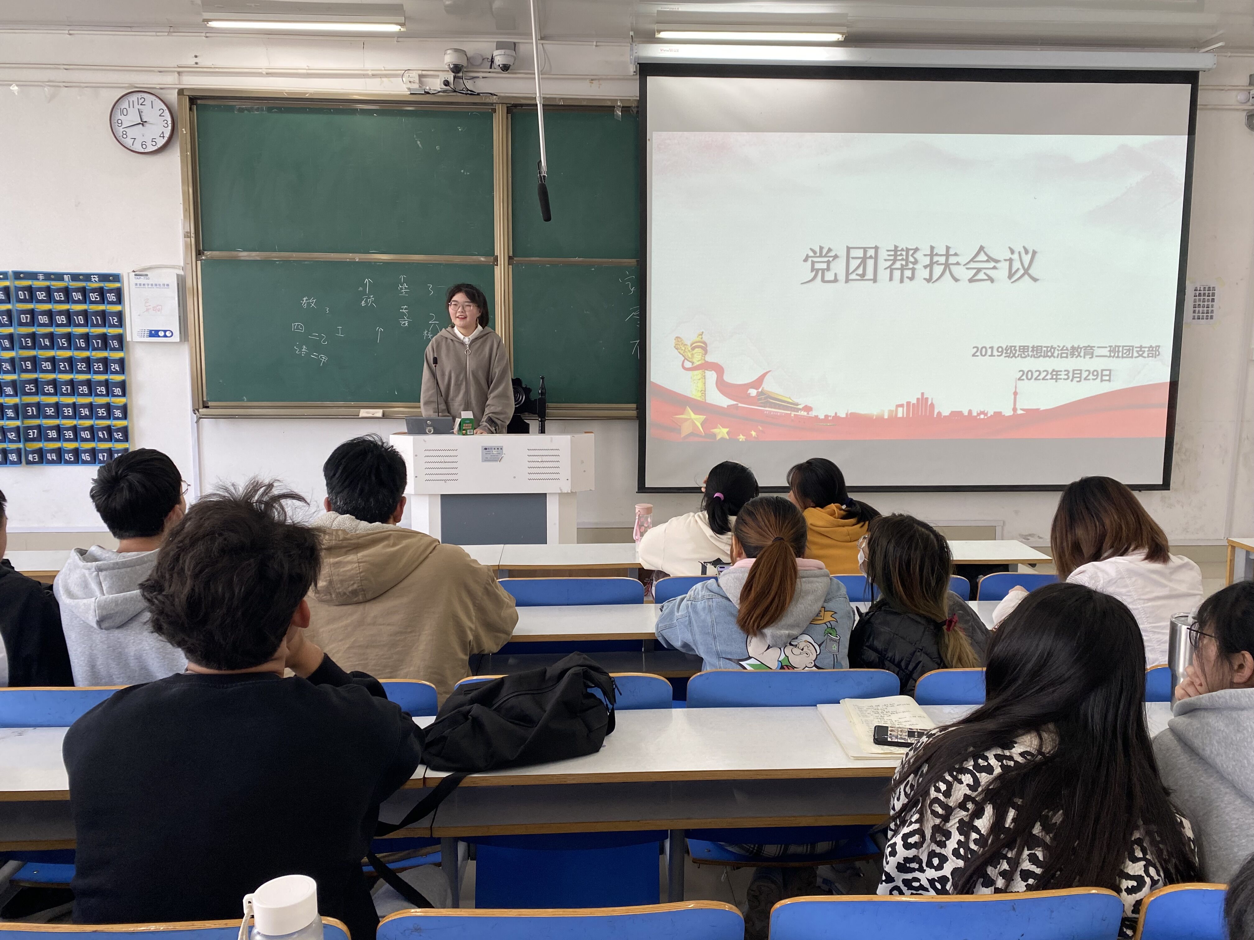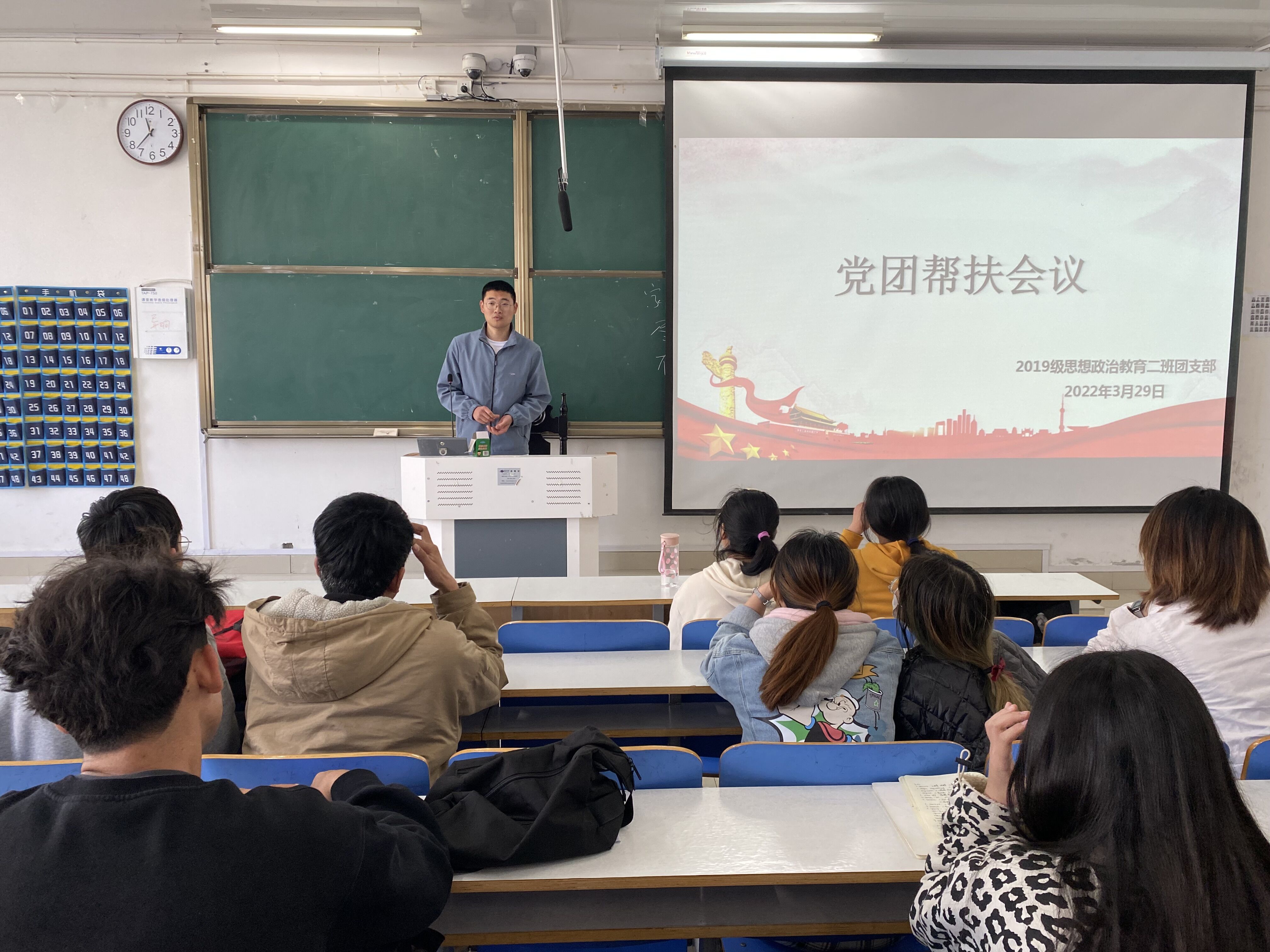 3月29日上午,pp电子官方网站2019级思想政治教育二班于社科楼516教室召开党团帮扶会议。pp电子官网党员杨康、王文慧及2019级思想政治教育二班全体成员共同参会。会议由团支书孙雅娴主持。
