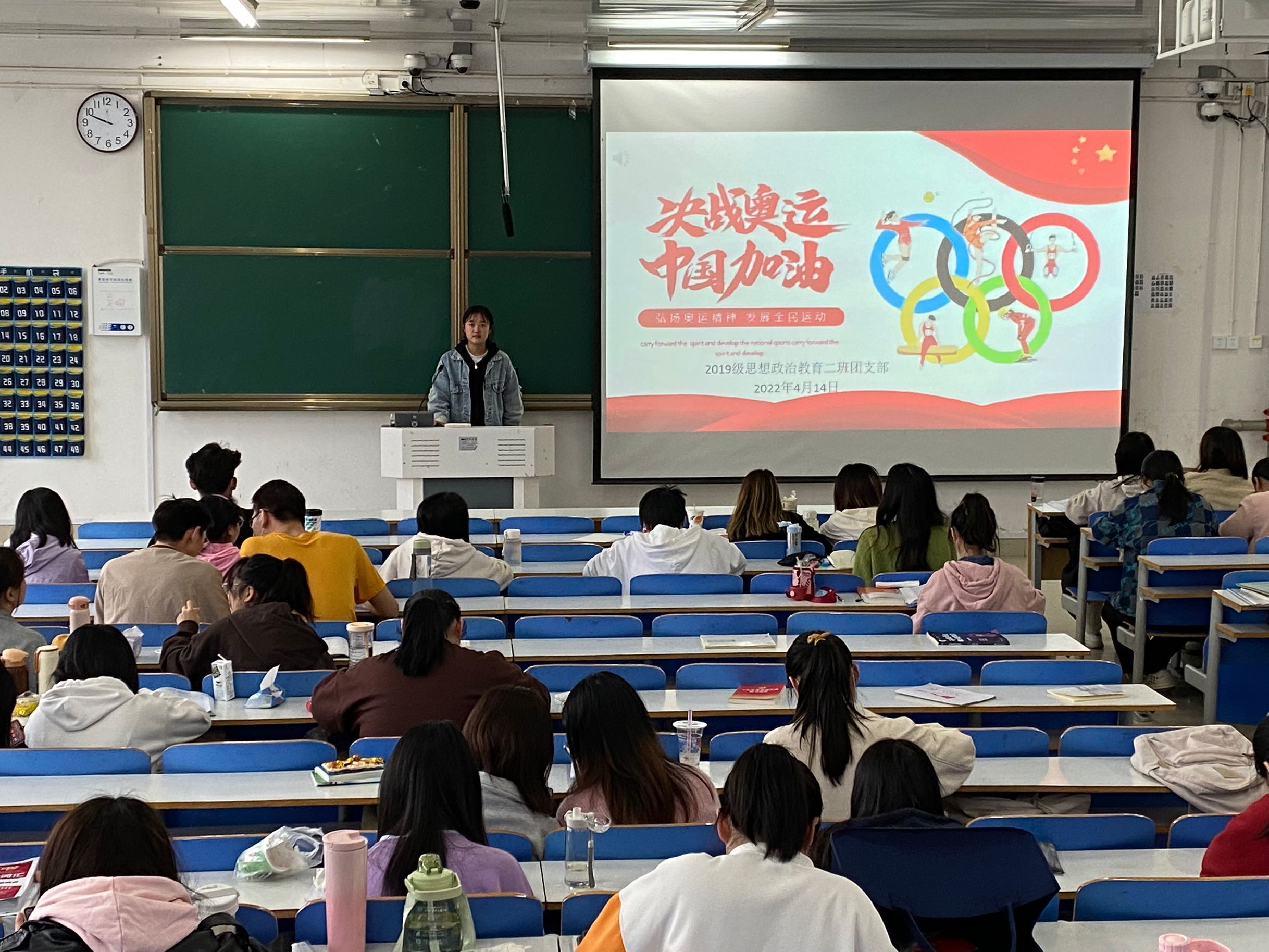 为弘扬和传承奥运精神,提高同学们对体育锻炼的重视,展现pp电子官网青年学子的蓬勃朝气,4月14日上午,pp电子官网2019级思想政治教育二班于516教室召开“决战奥运,中国加油”主题团课。会议由孙雅娴主持。