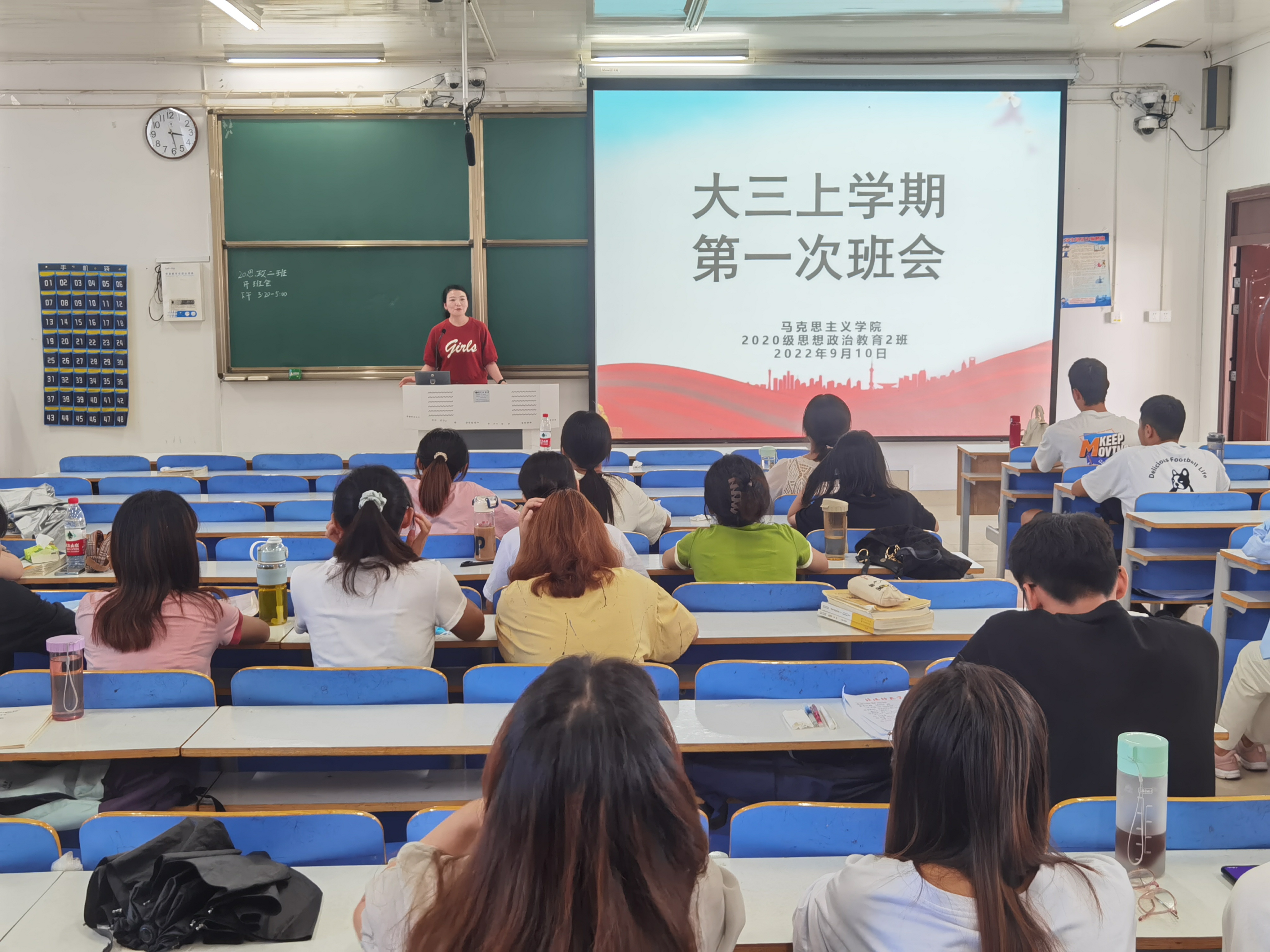 9月10日下午,pp电子官方网站2020级思想政治教育二班、定向二班在社科楼514教室召开新学期第一次班会。二班、定向二班全体同学参与此次班会。辅导员陶青青出席并主持班会。